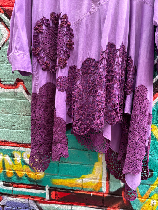 Sold outPURPLE COTTON SHIRT WITH DOILIES