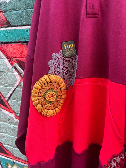 MAXI SWEATER DRESS WITH VINTAGE DOILIES