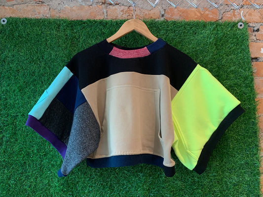 CROPPED SHORT SLEEVE SWEATER - SQUARED AWAY - MEDIUM
