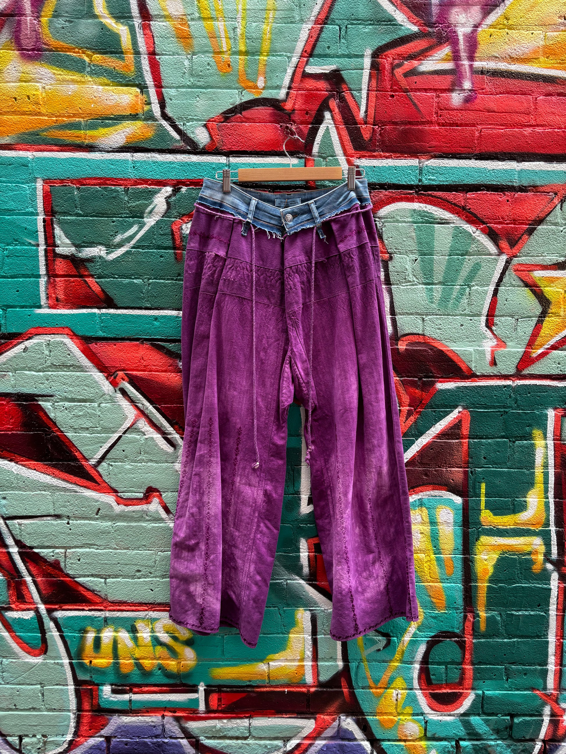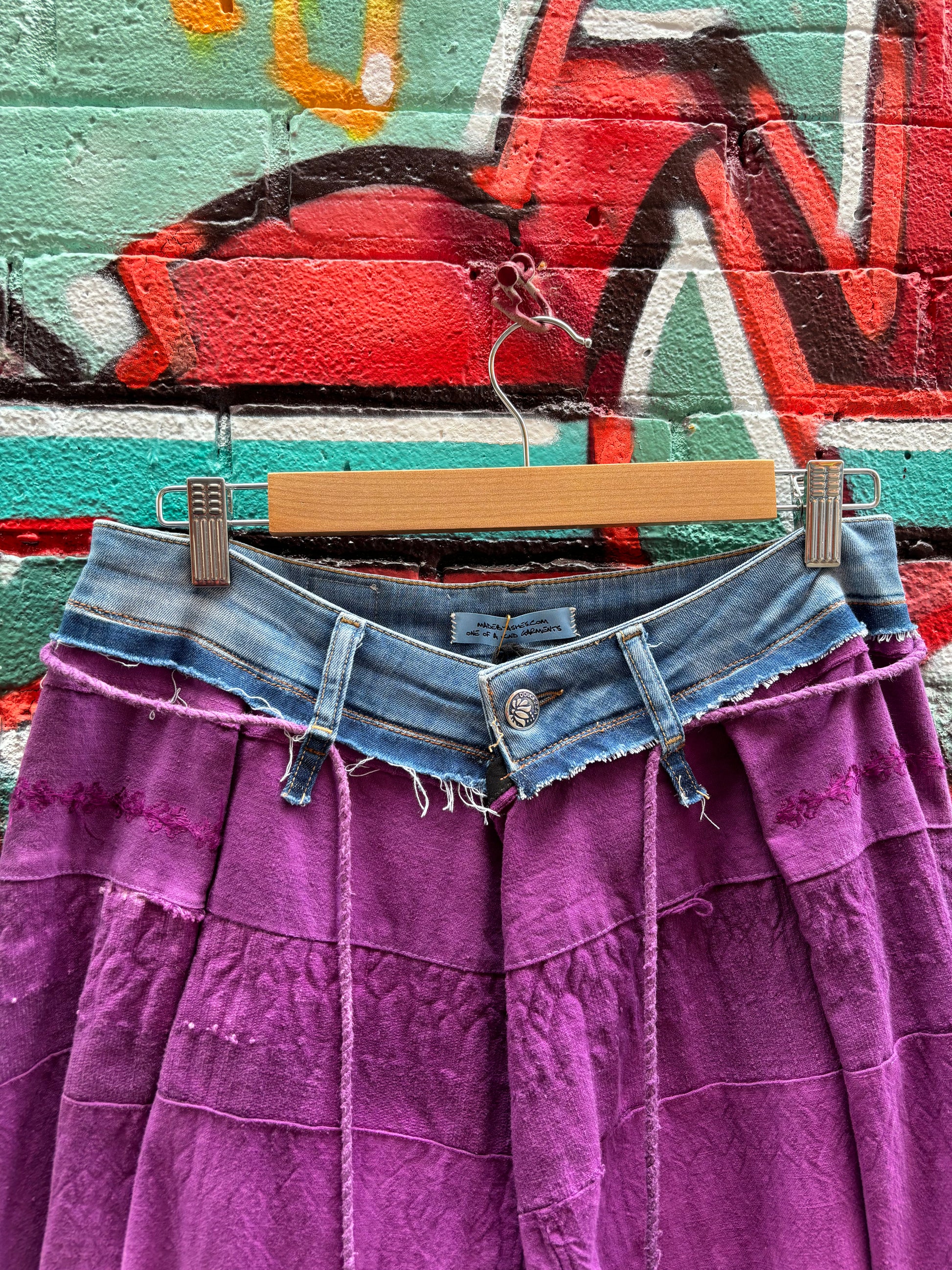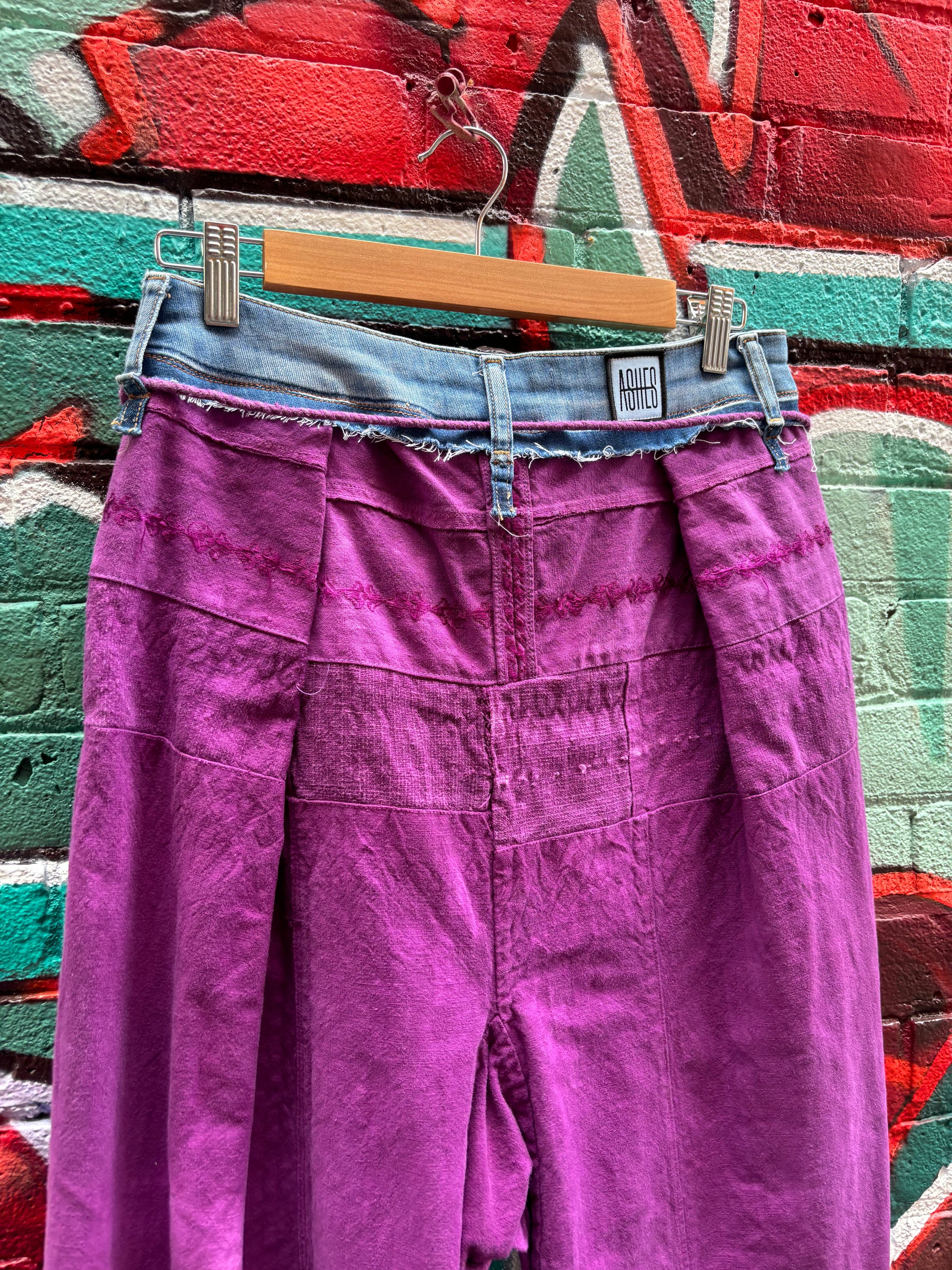 All materials rescued and upcycled into a wonderful , magical one of a kind pair of pants.