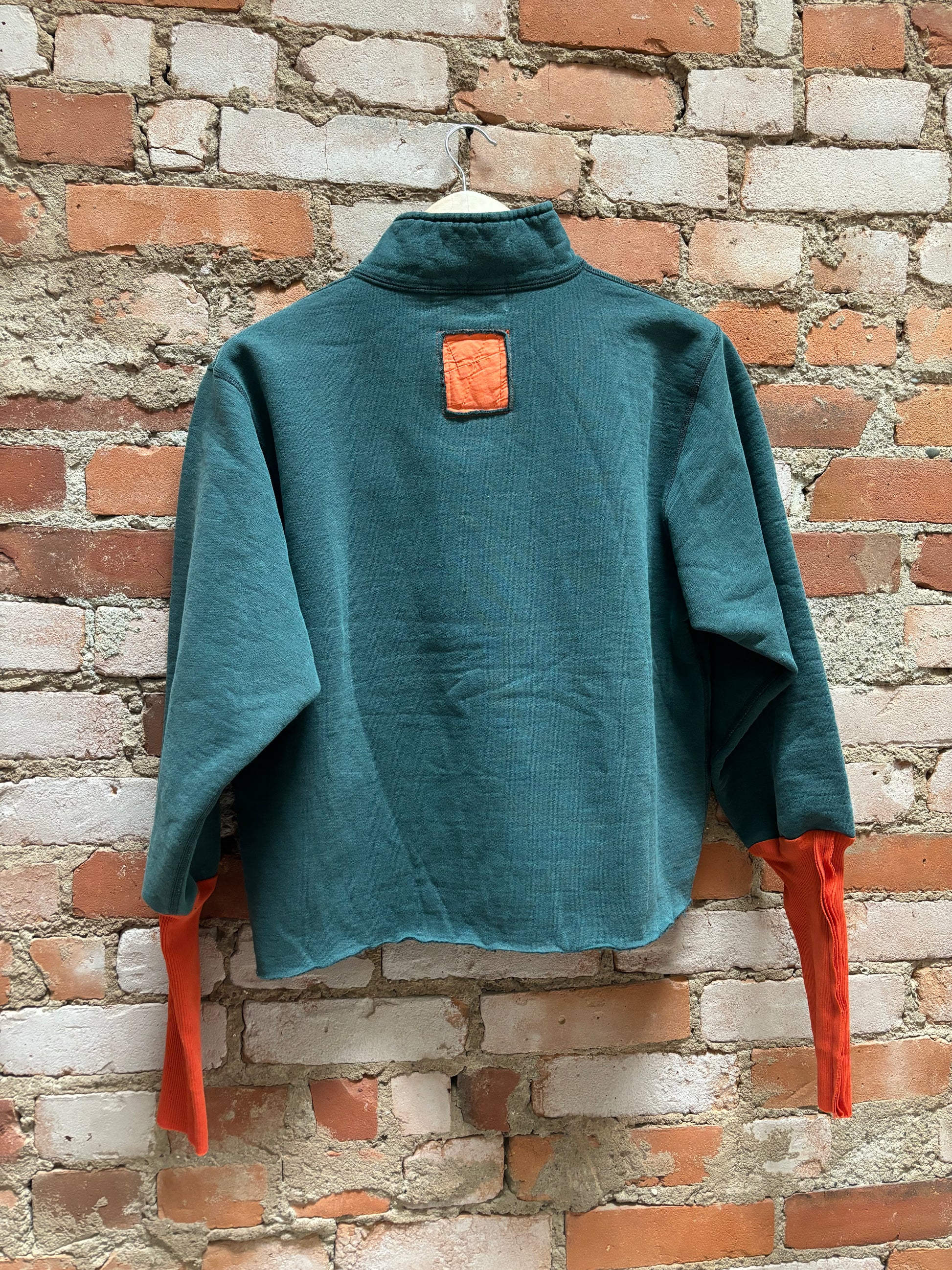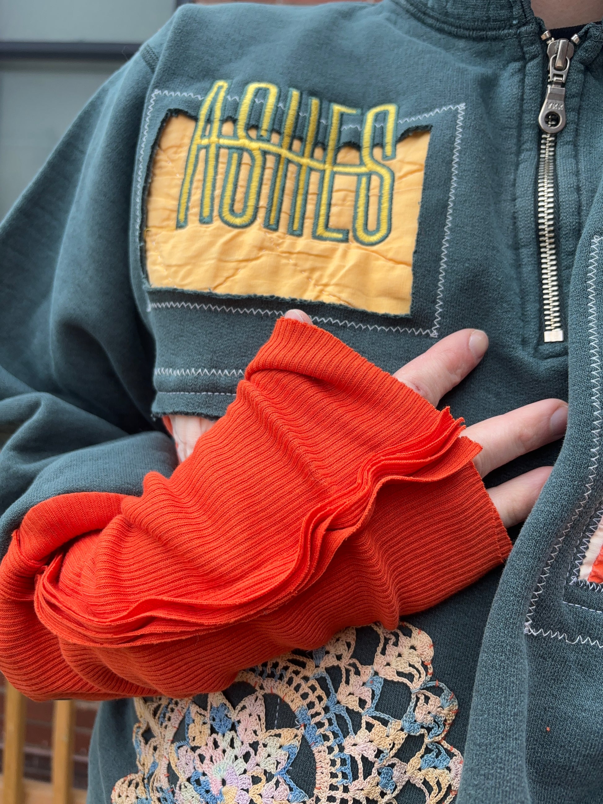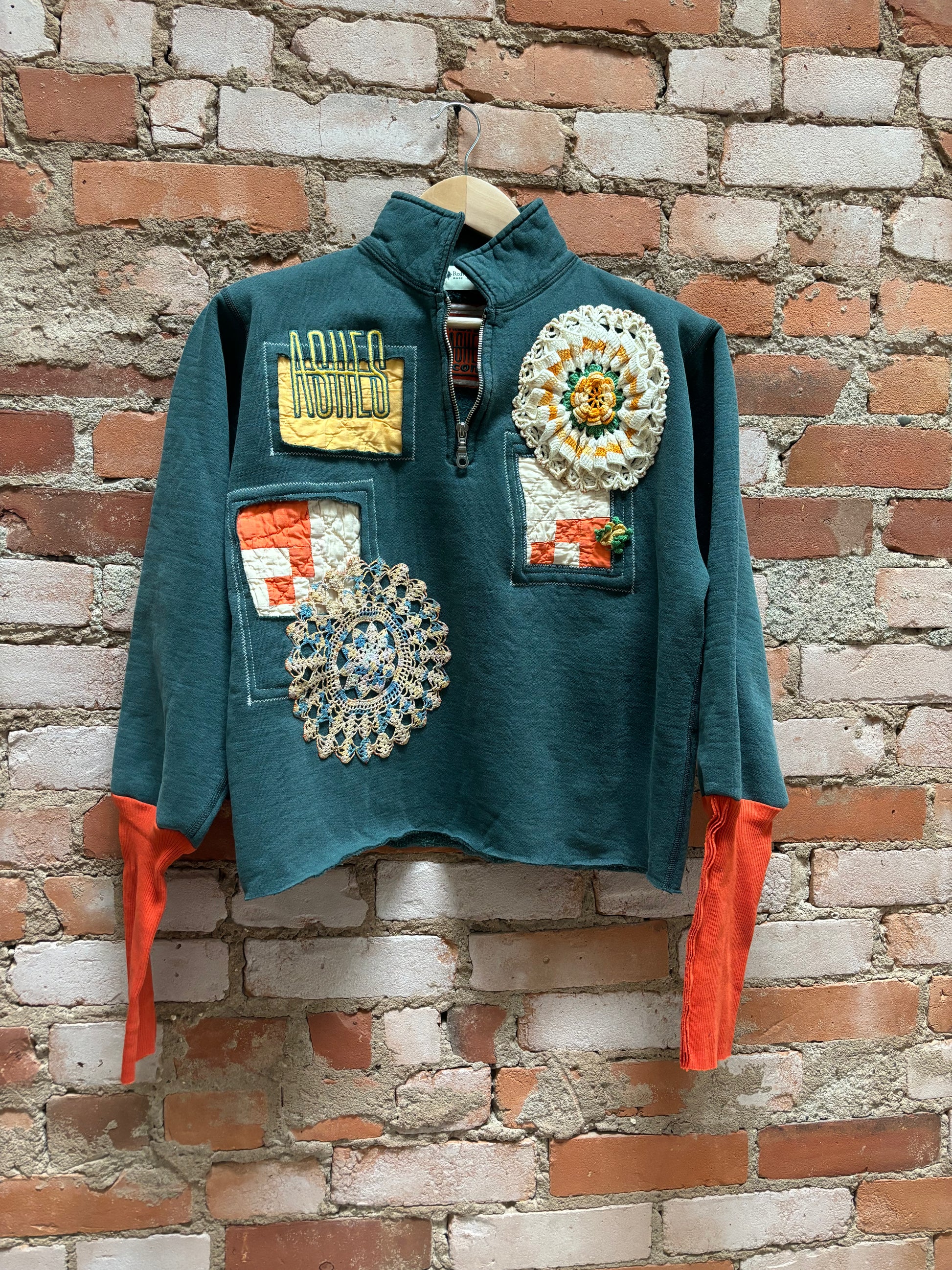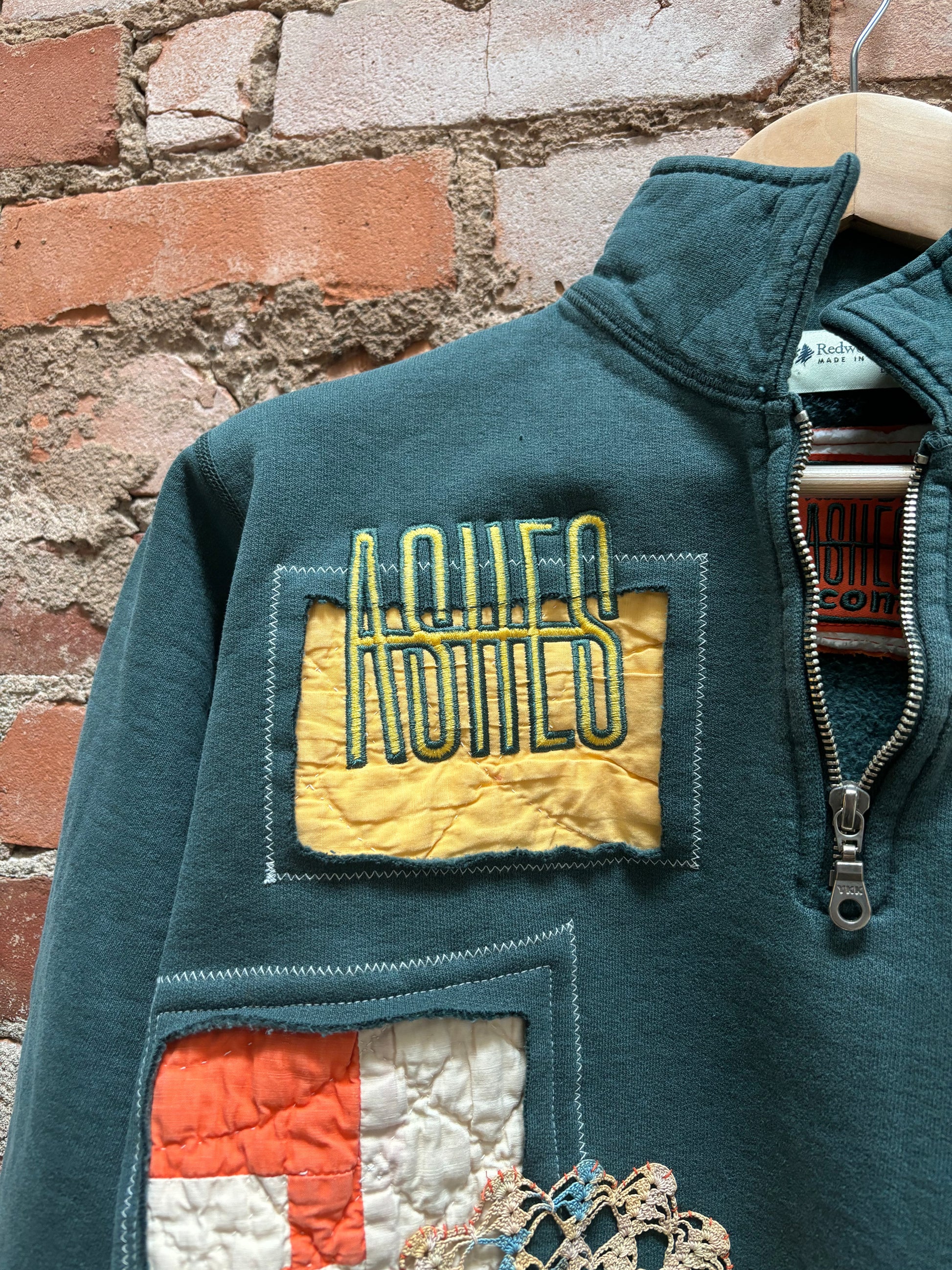 Upcycled small 3/4 zip heavyweight real cotton sweater in ASHES style.