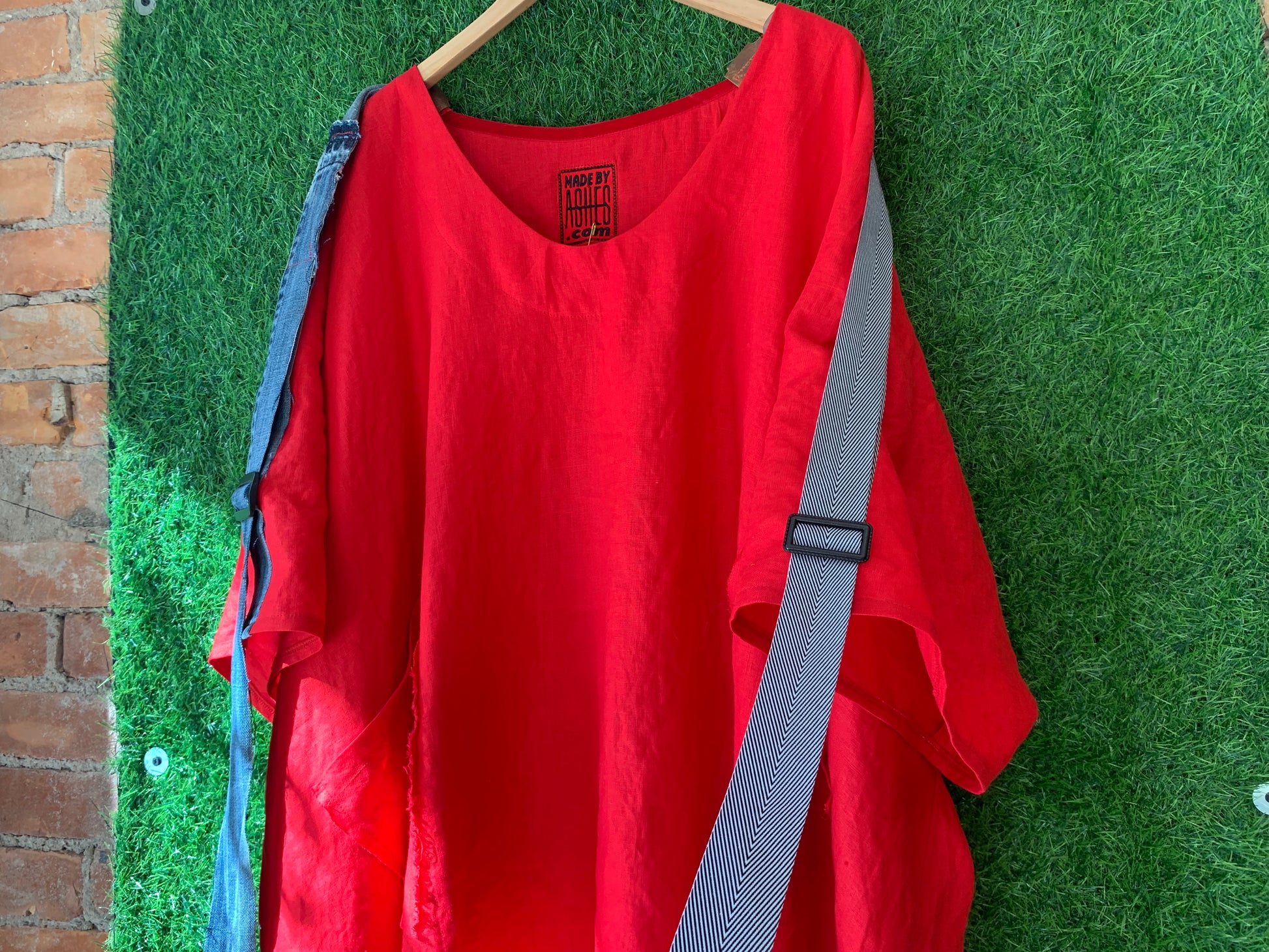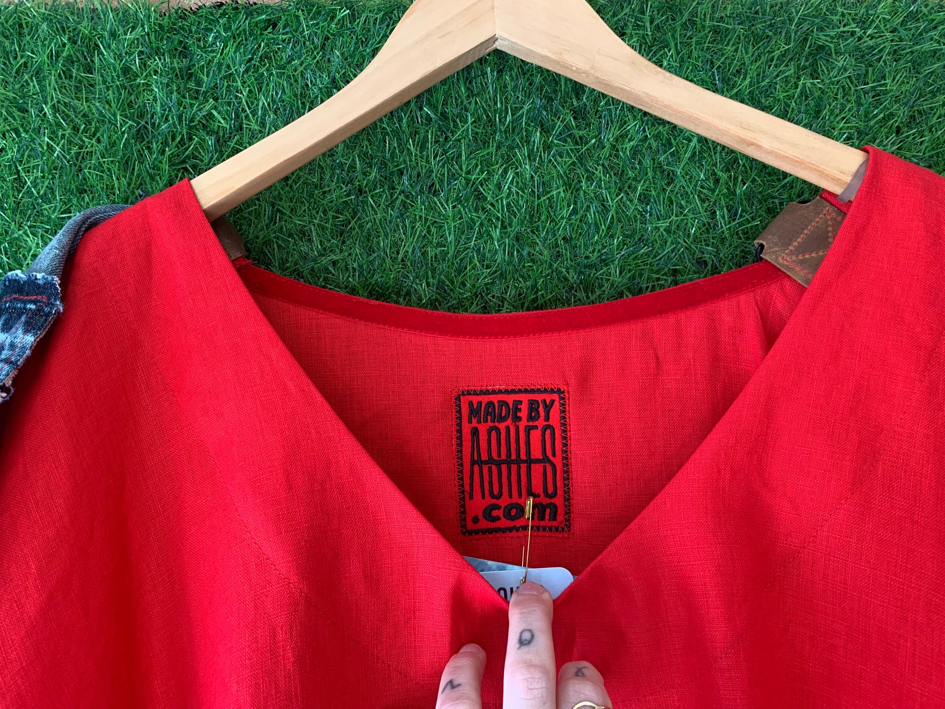 33 RED LINEN SHIRT- FITS UP TO 3XL - ONE OF A KIND