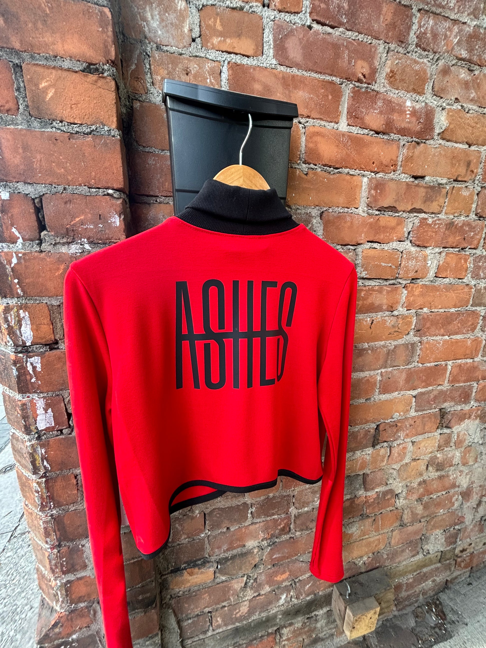 ASHES logo printed on back. Extra long sleeves with thumb holes. Cozy ribbed turtleneck.