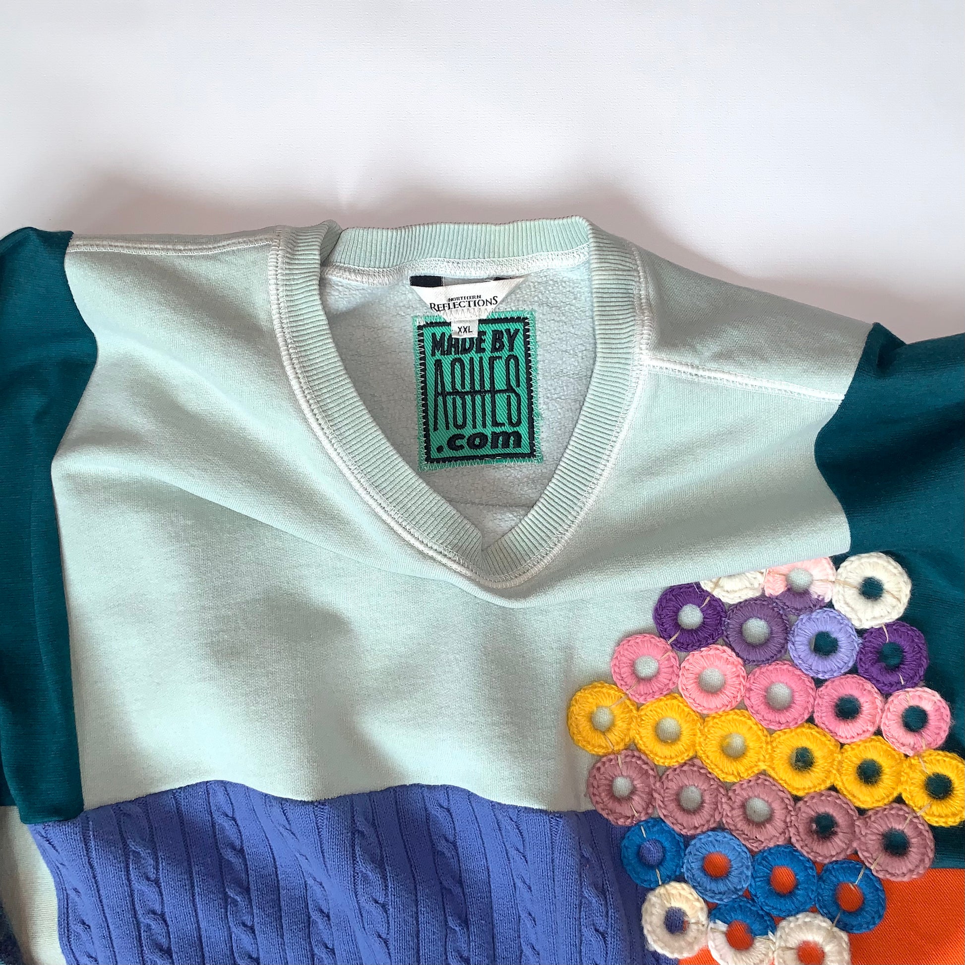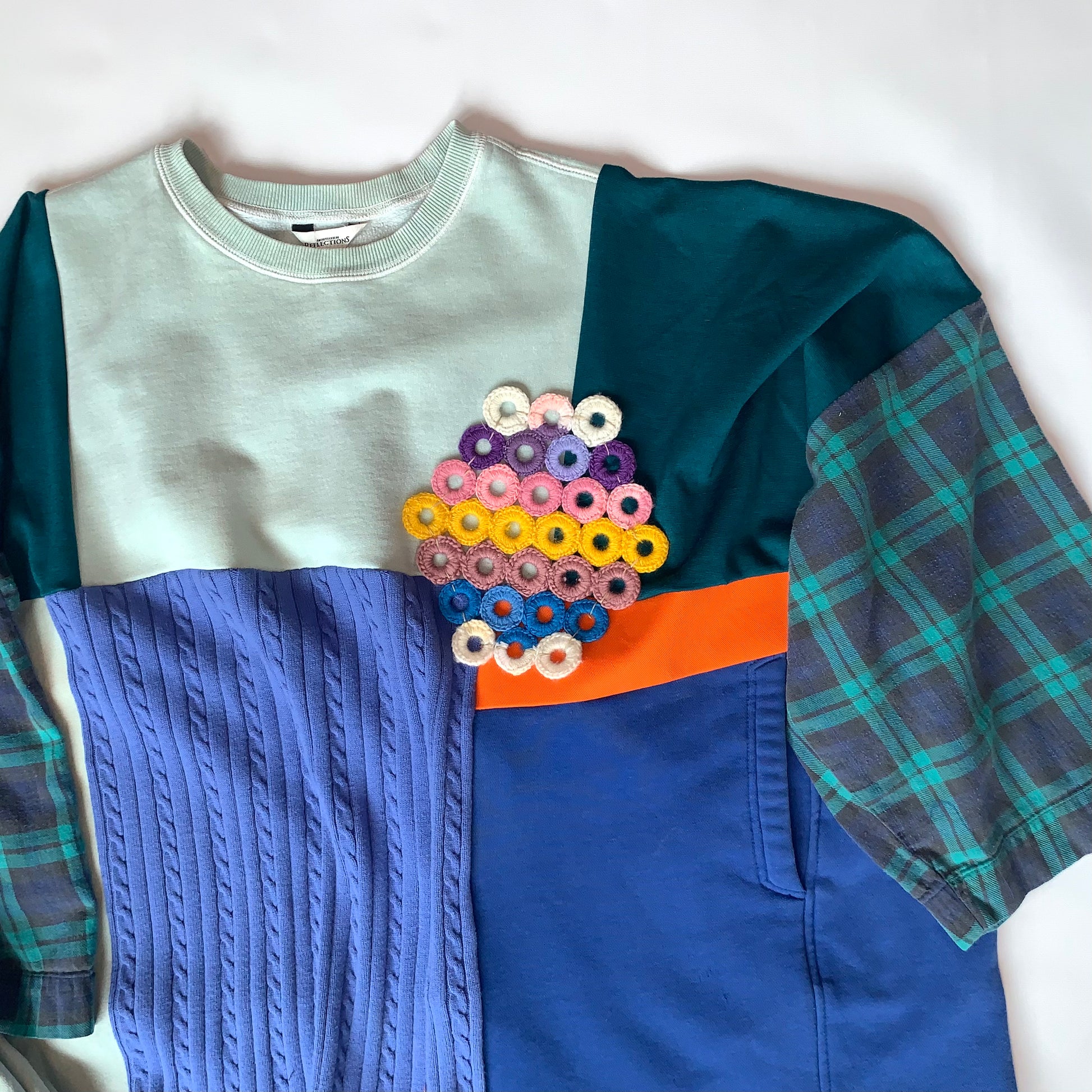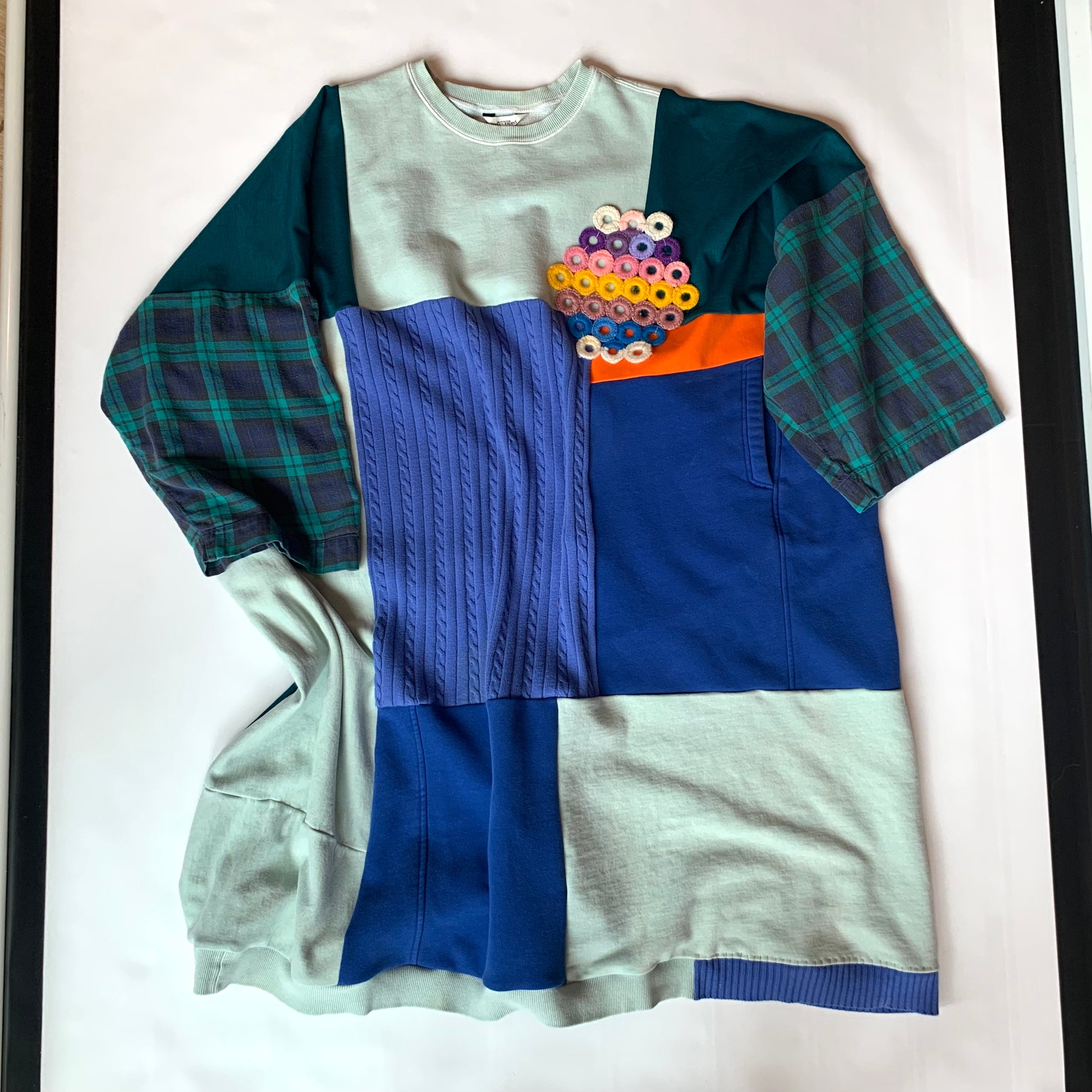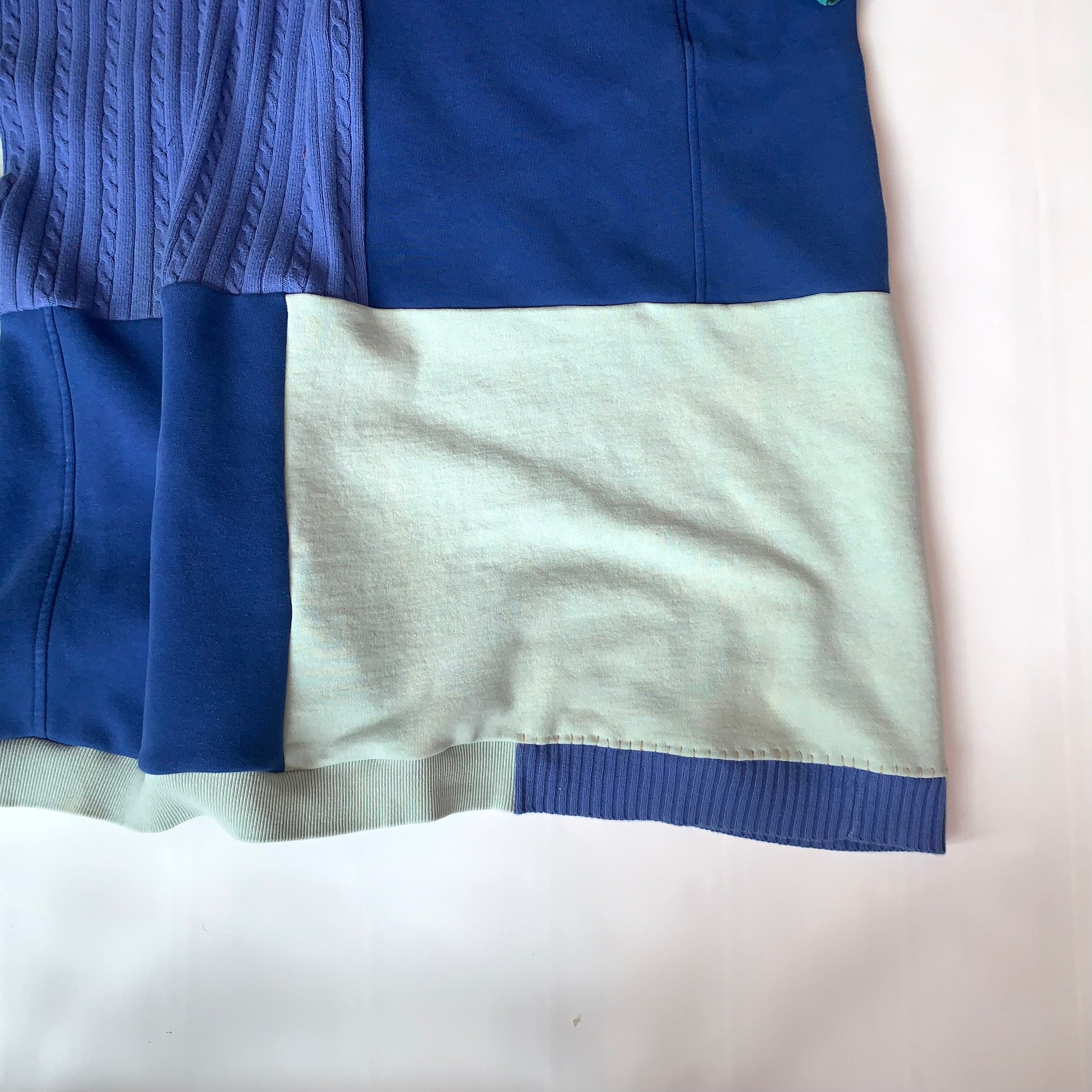 Rescued and upcycled knit textiles stitched together by ASHES