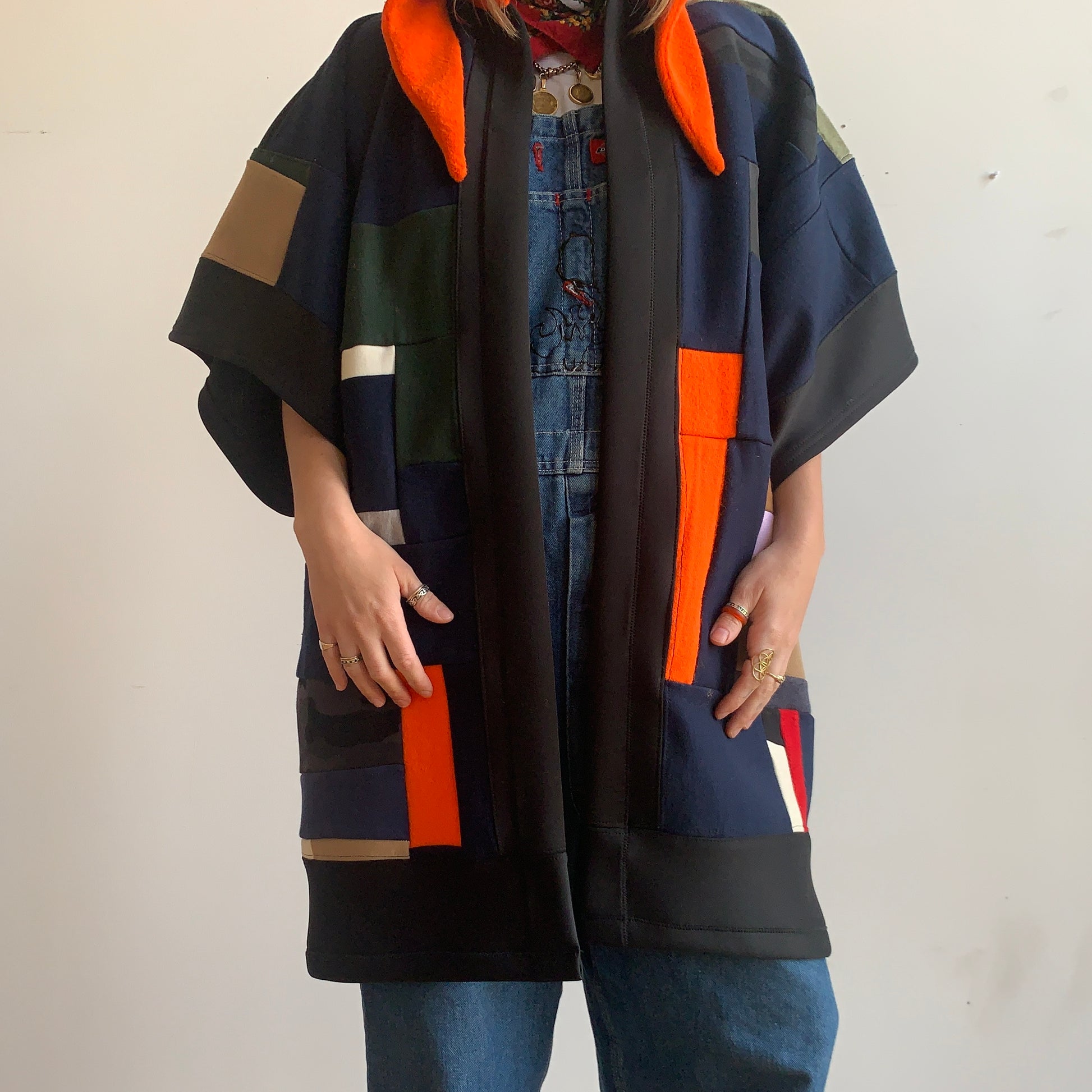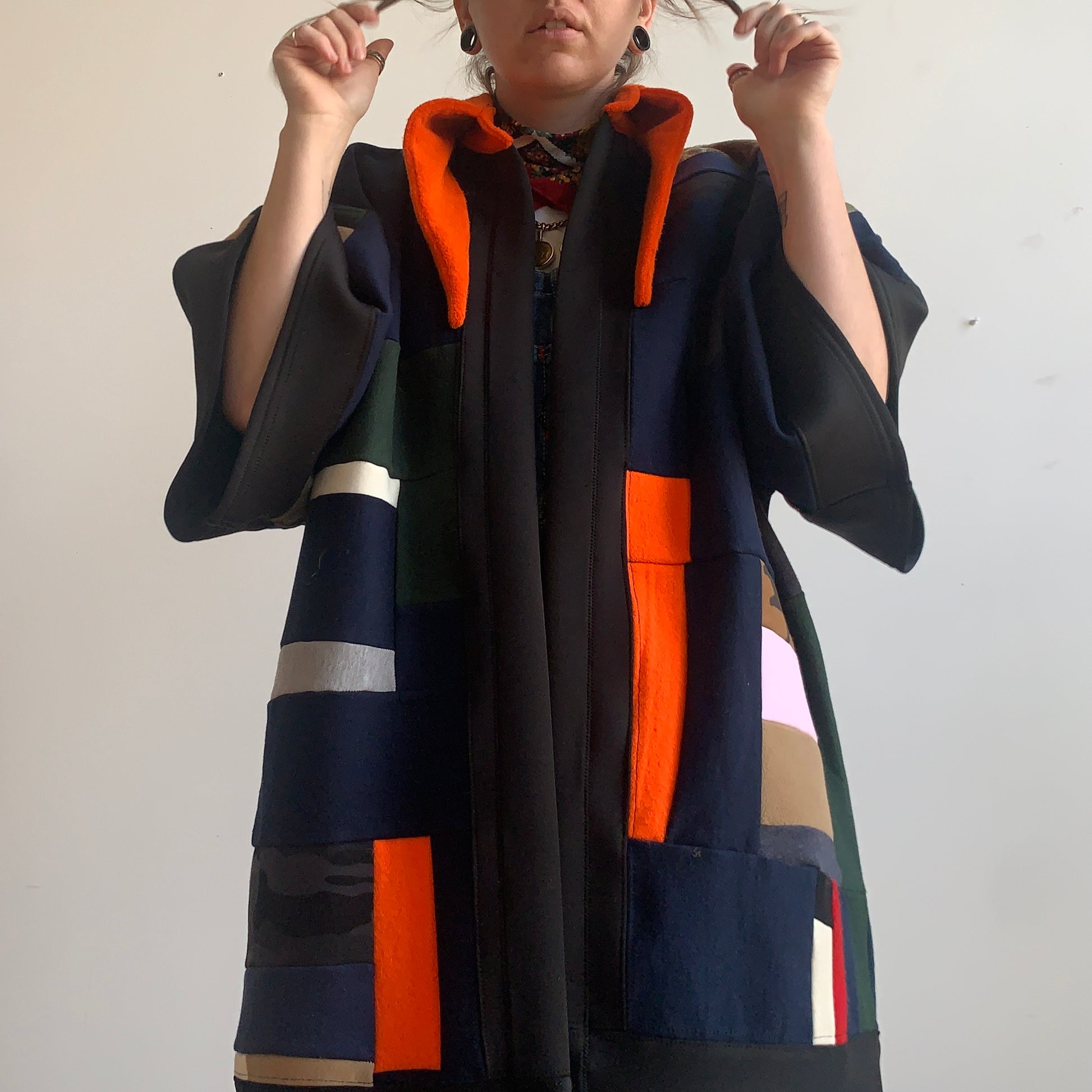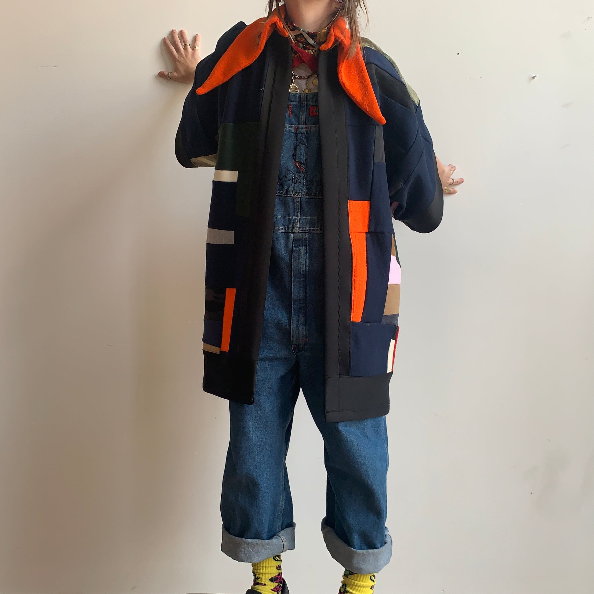 made with jersey sweater scraps pieced backed together in flow state.