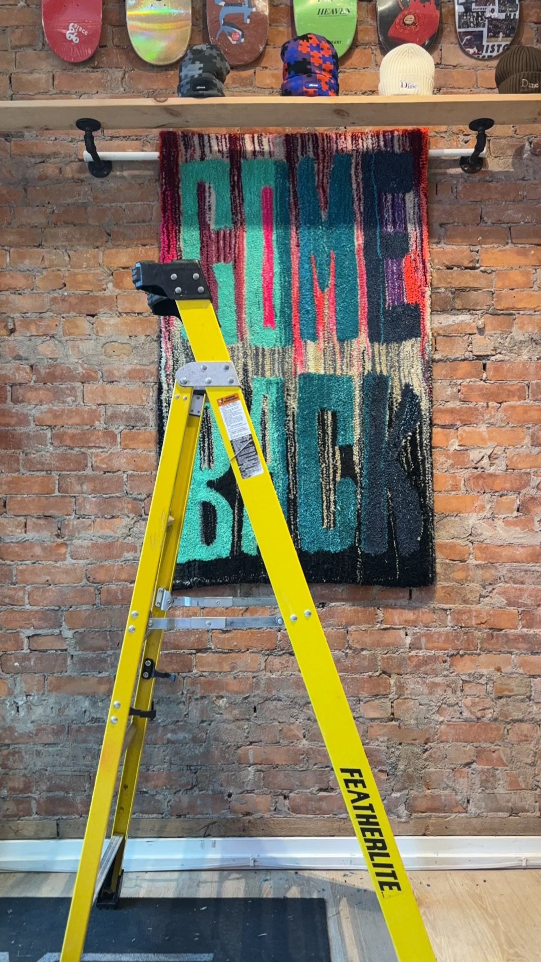 MACHINE TUFTED WITH A VARIETY OF WOOL AND ACRYLIC YARNS SOURCED FROM SECOND HAND LOCATIONS.
