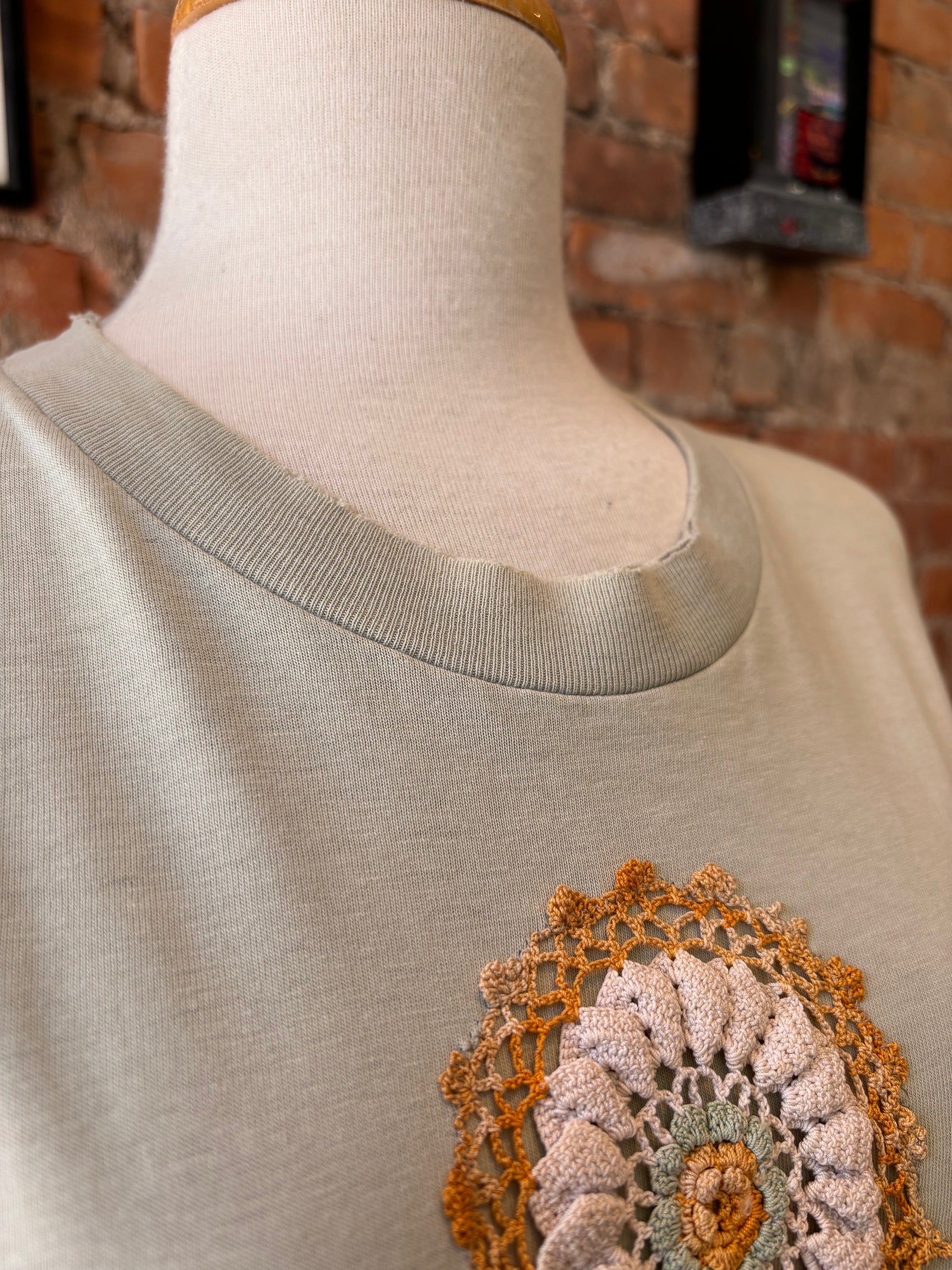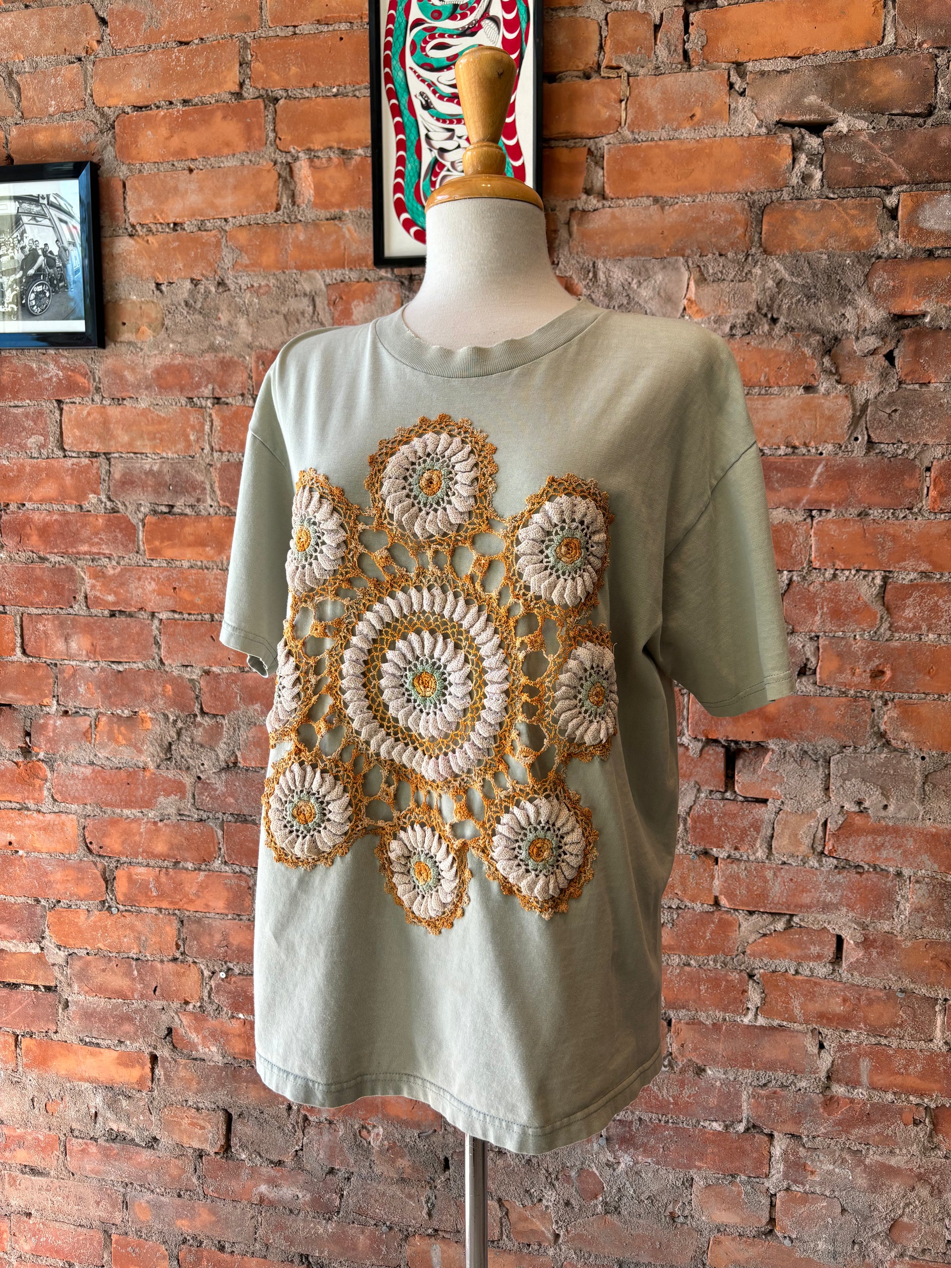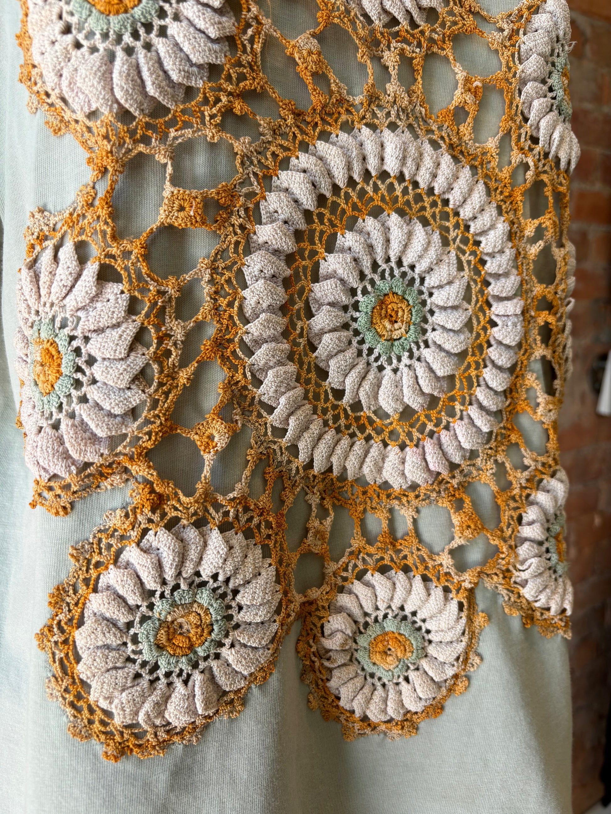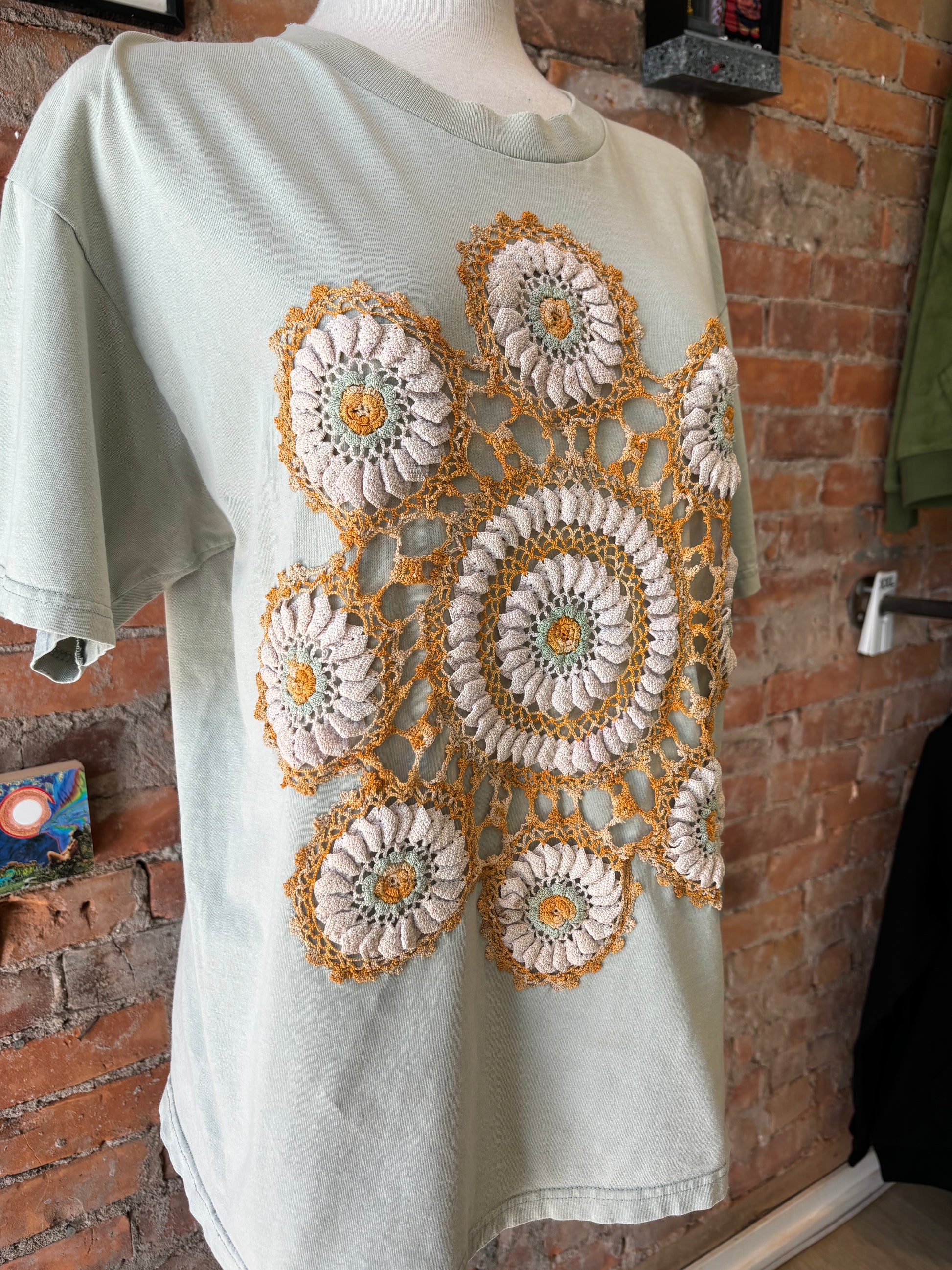 Lovely sea foam upcycled tshirt with all the natural wear.