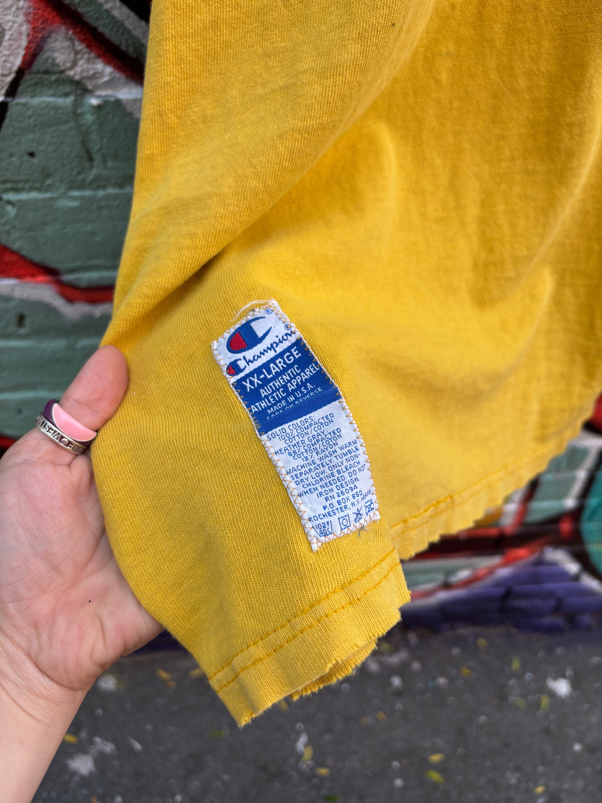 Upcycled Champion Green Bay Packers tshirt with all the natural wear.