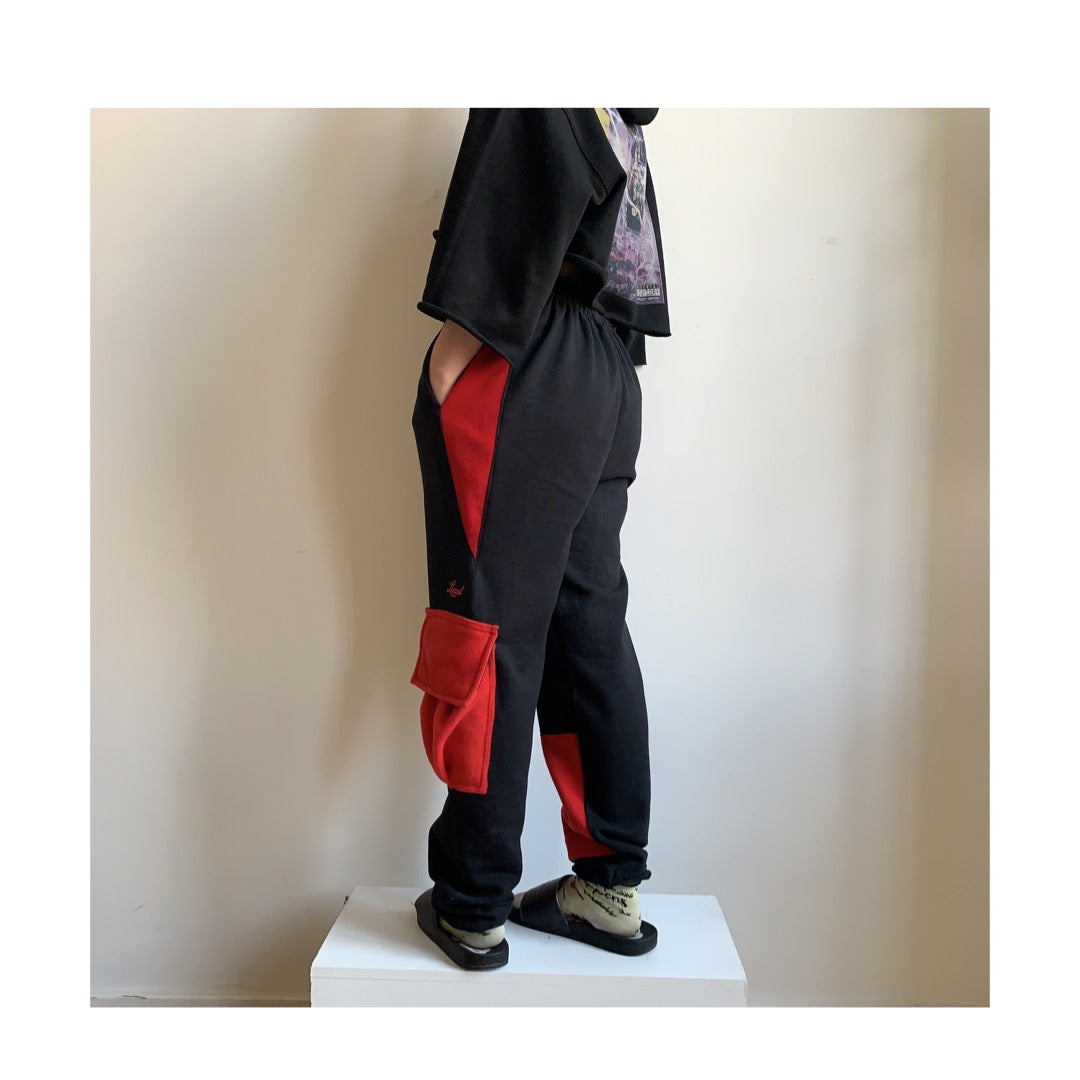 Red Fleece details with patches and cargo Pocket. Side Pockets and embroidery detail.