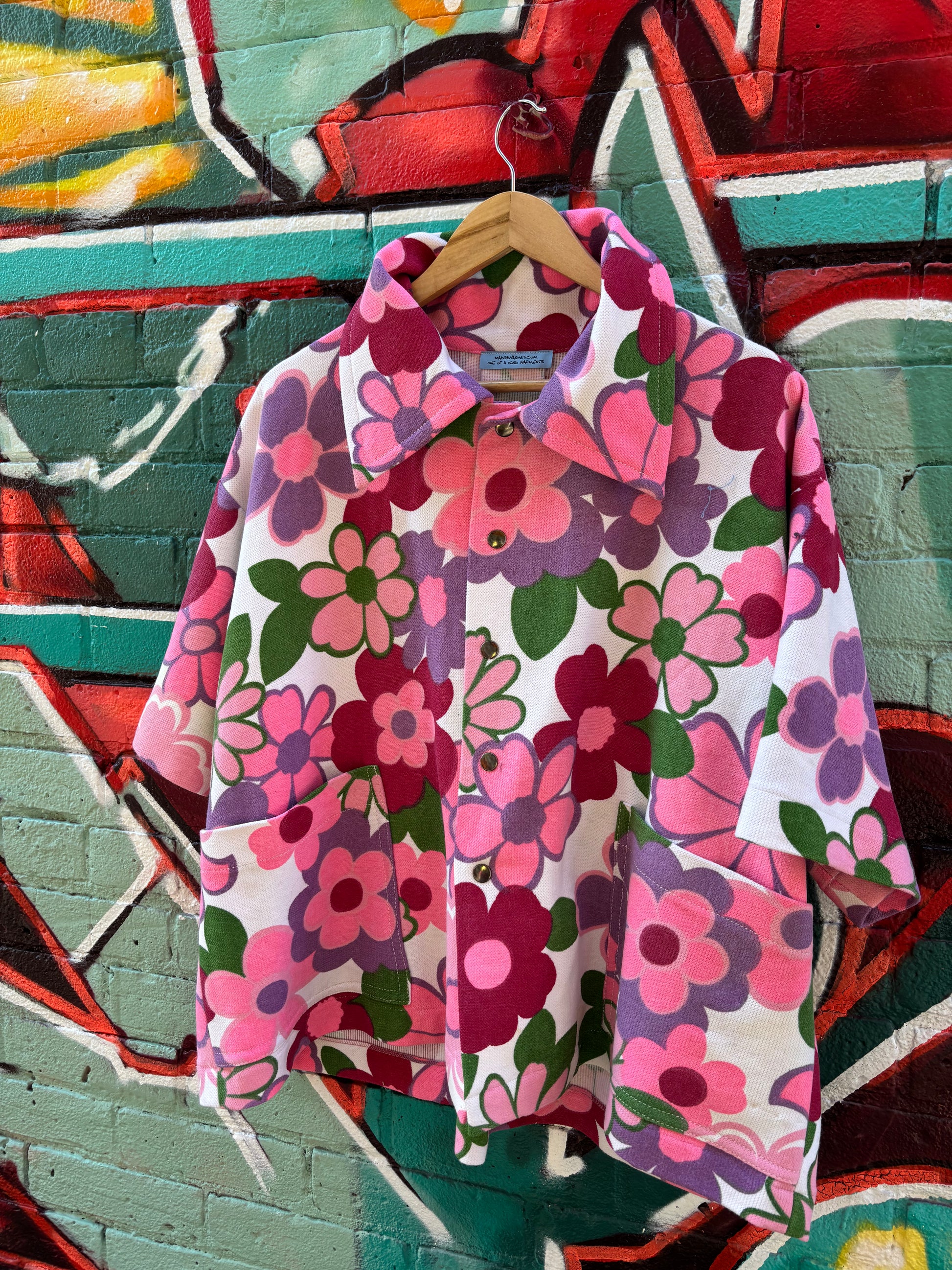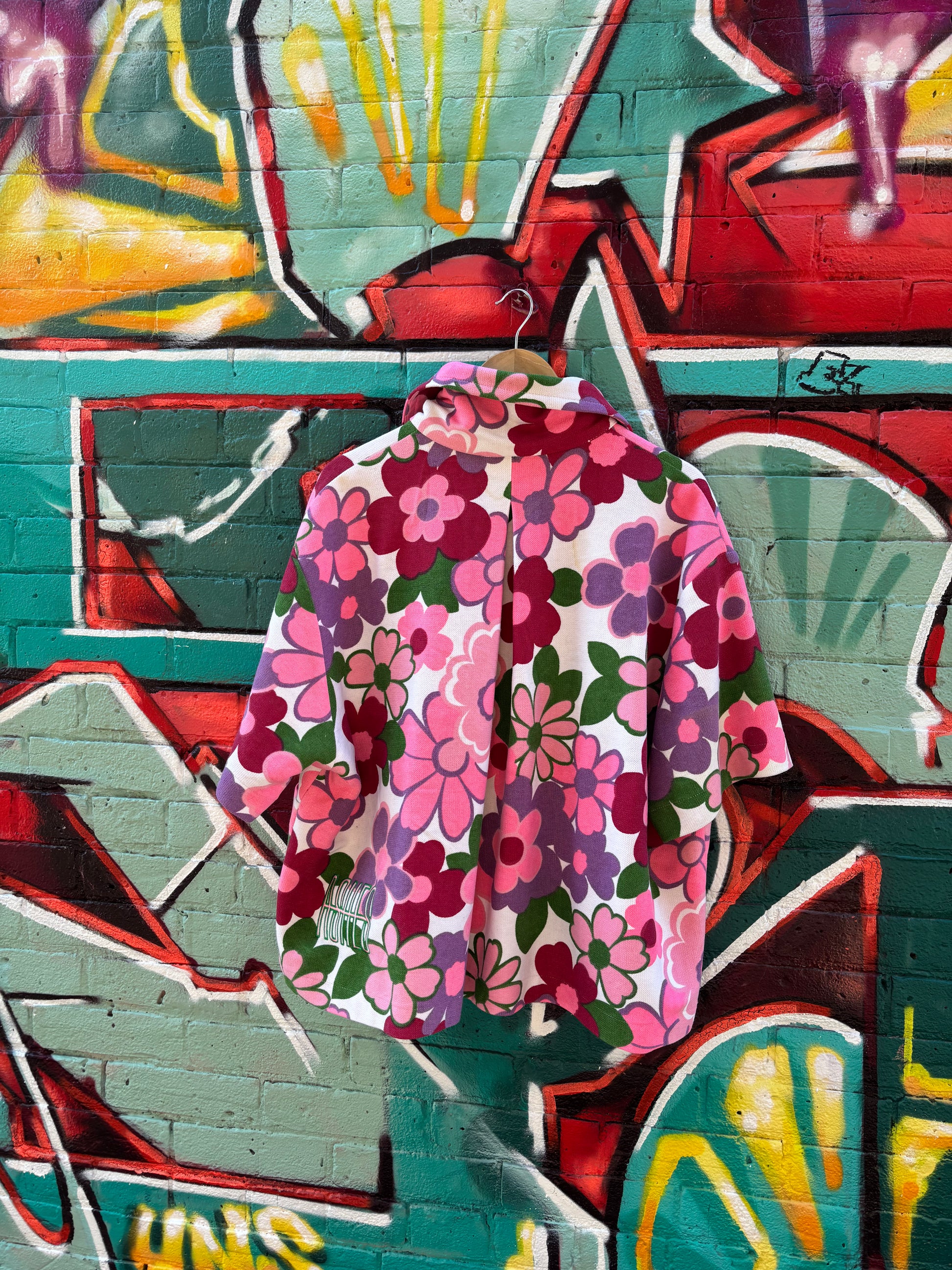 Vintage super pop flower duvet reworked into a magical top.