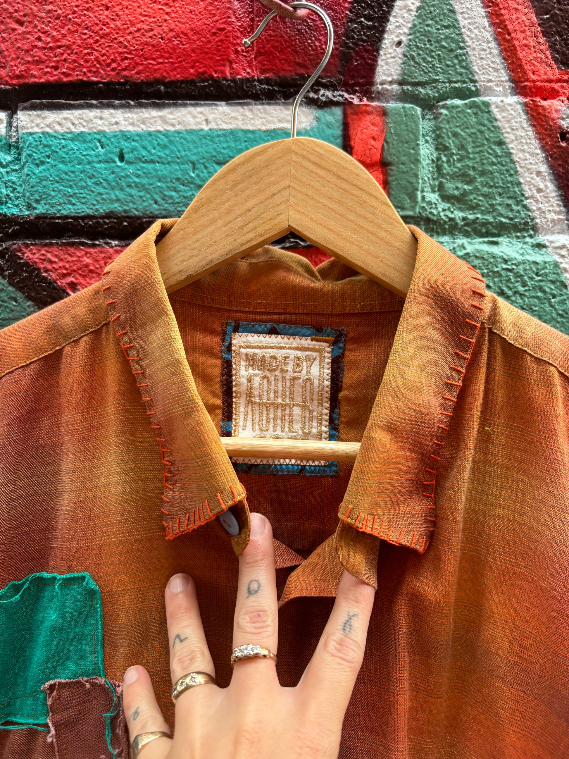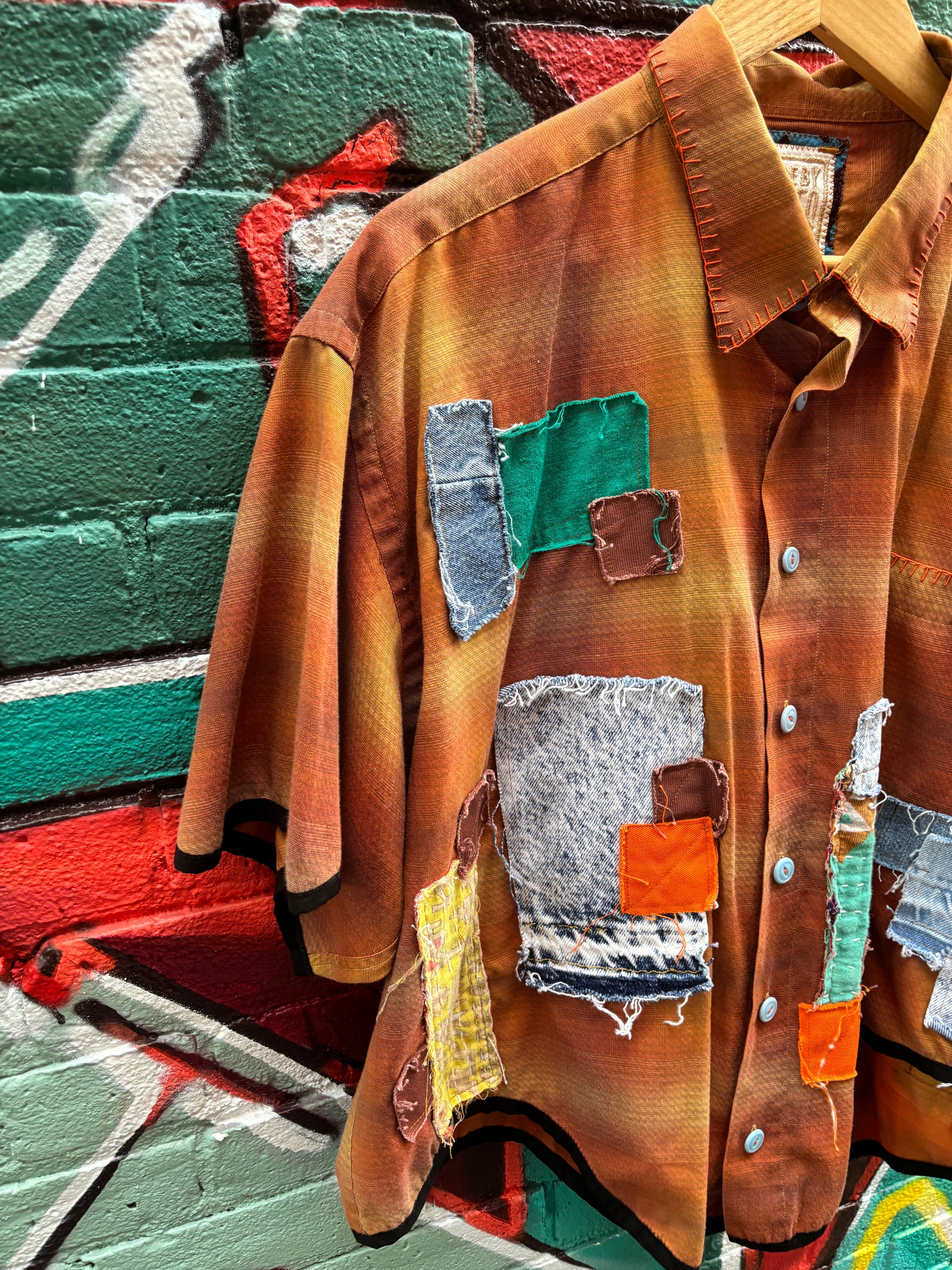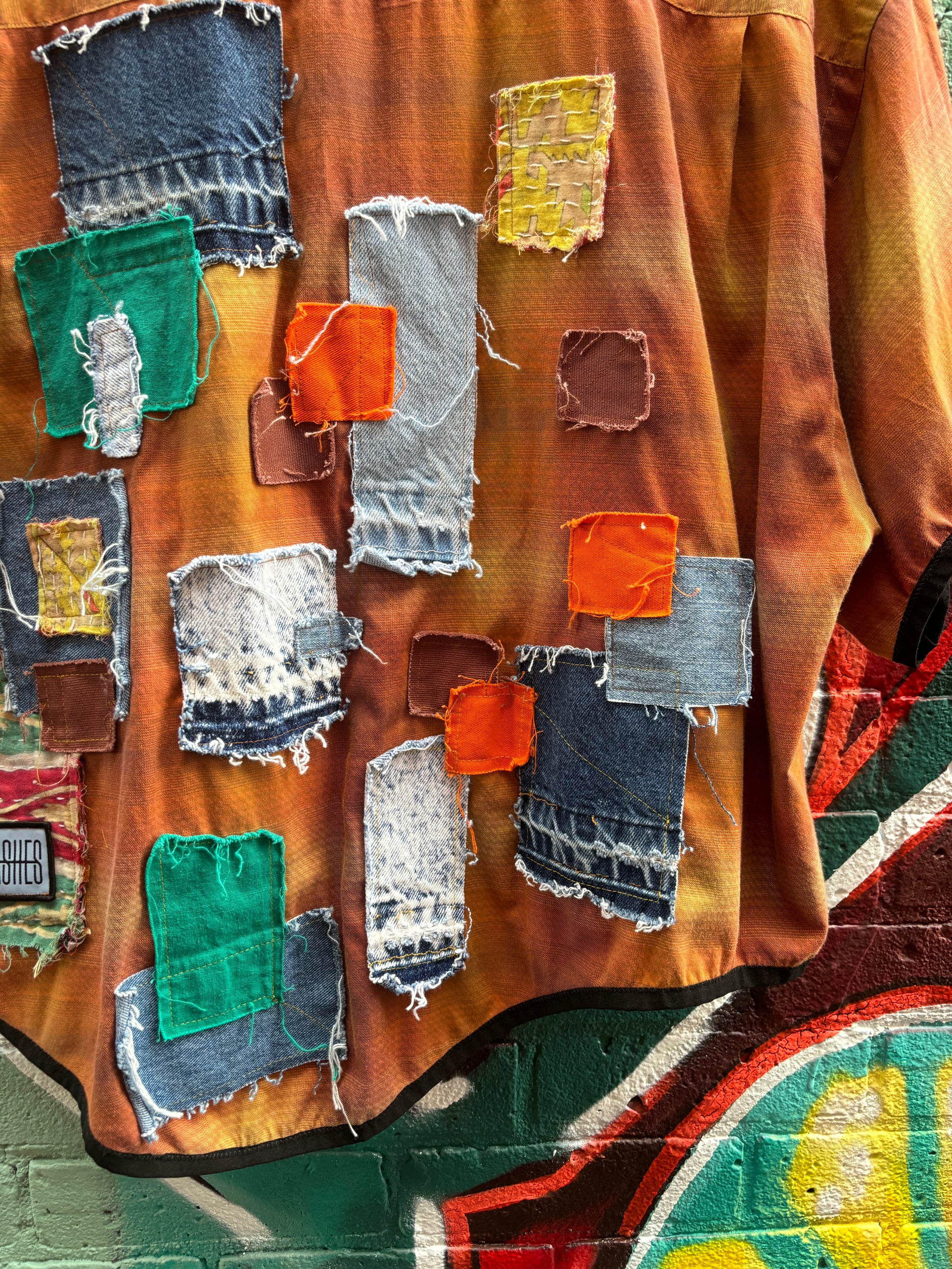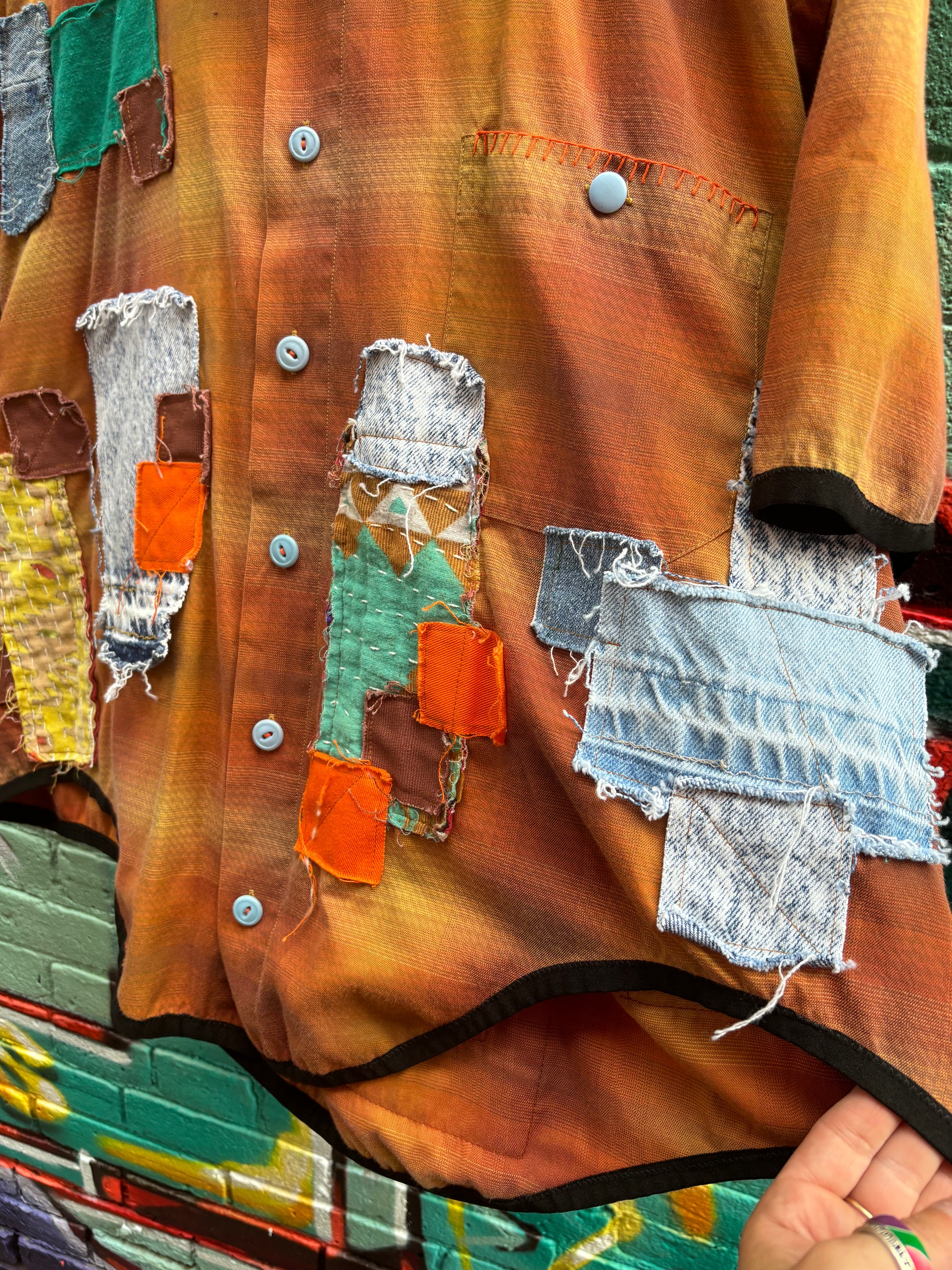 FLUID PLAID PATCHWORK BUTTON UP XL