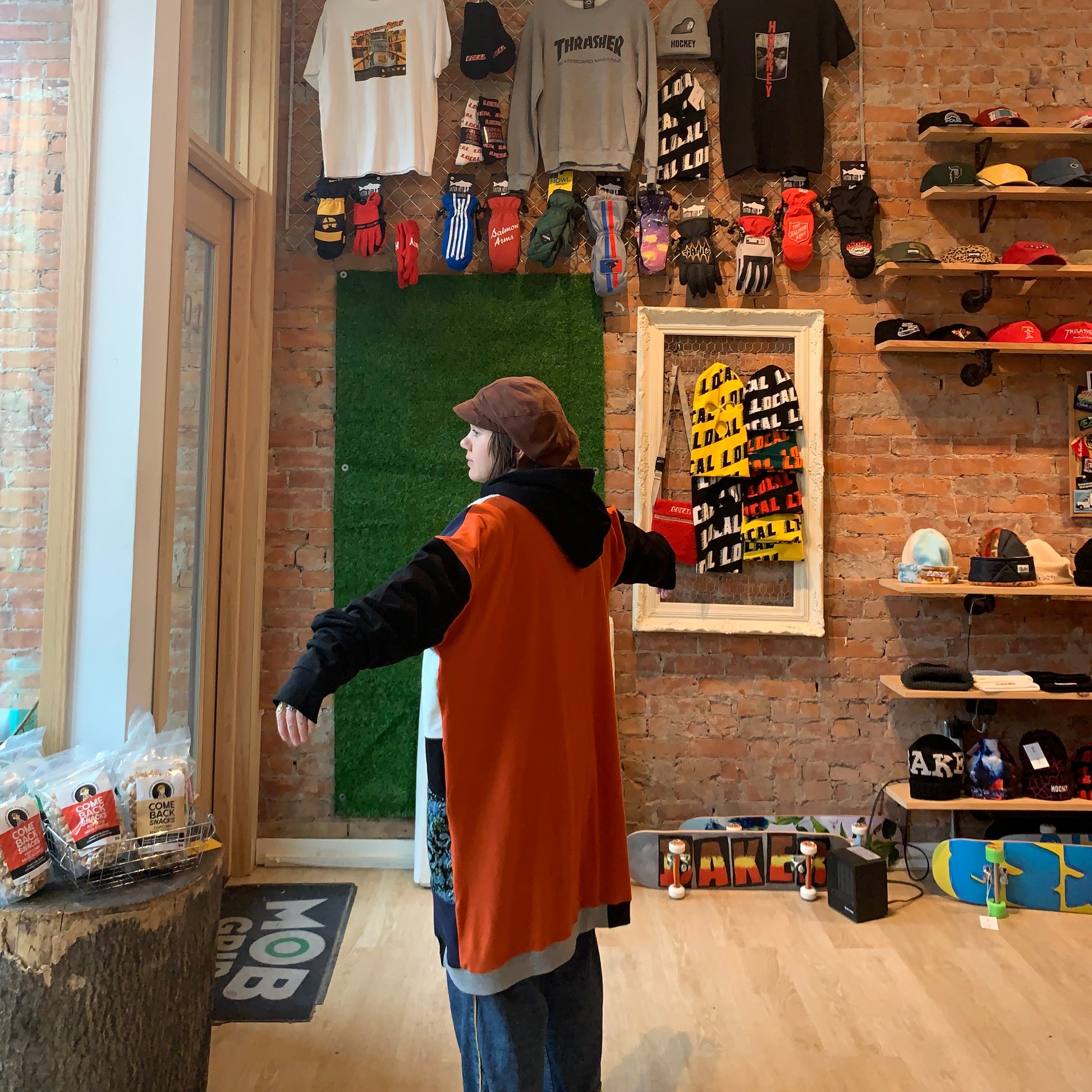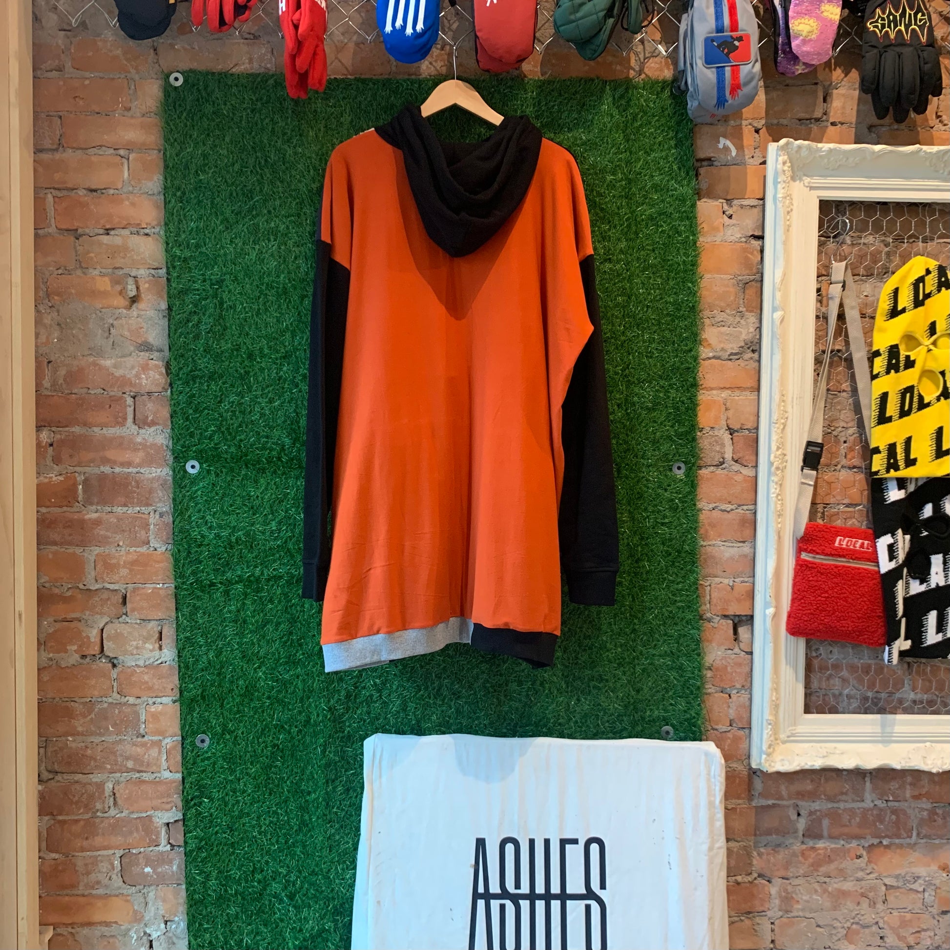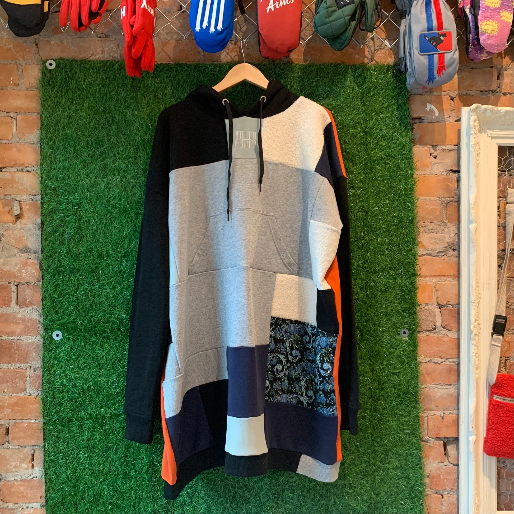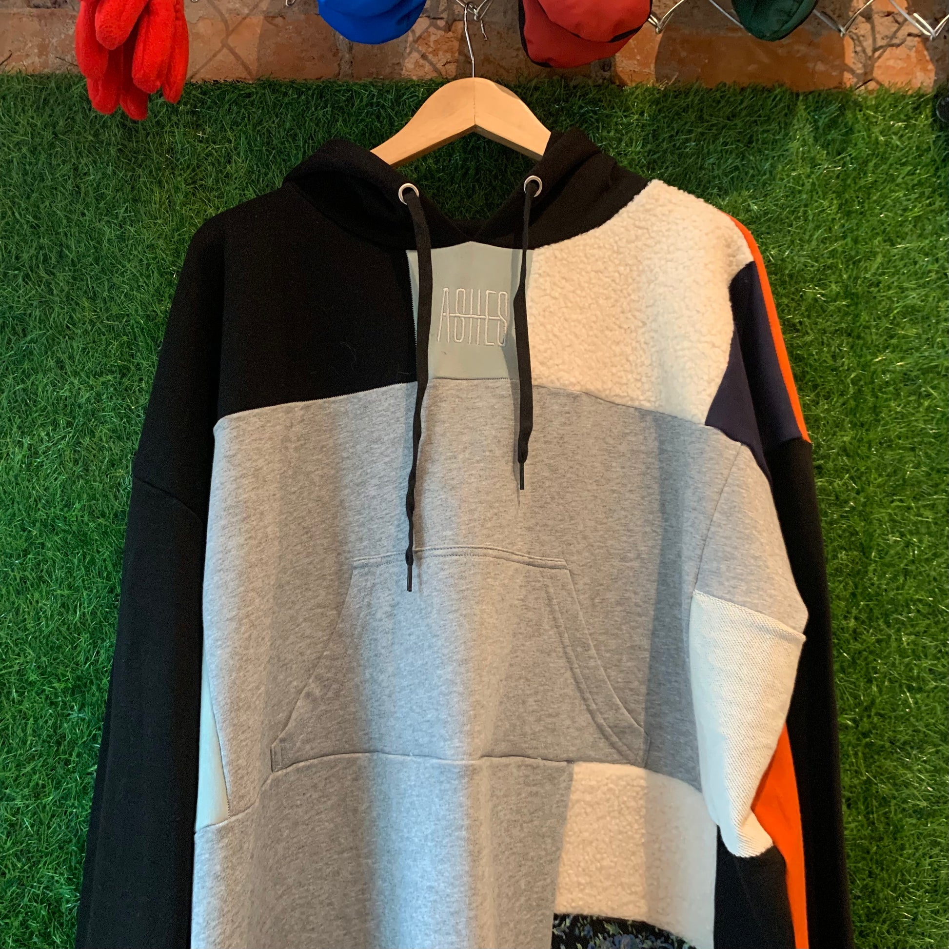 Front kangaroo pocket. ASHES embroidery on sternum.