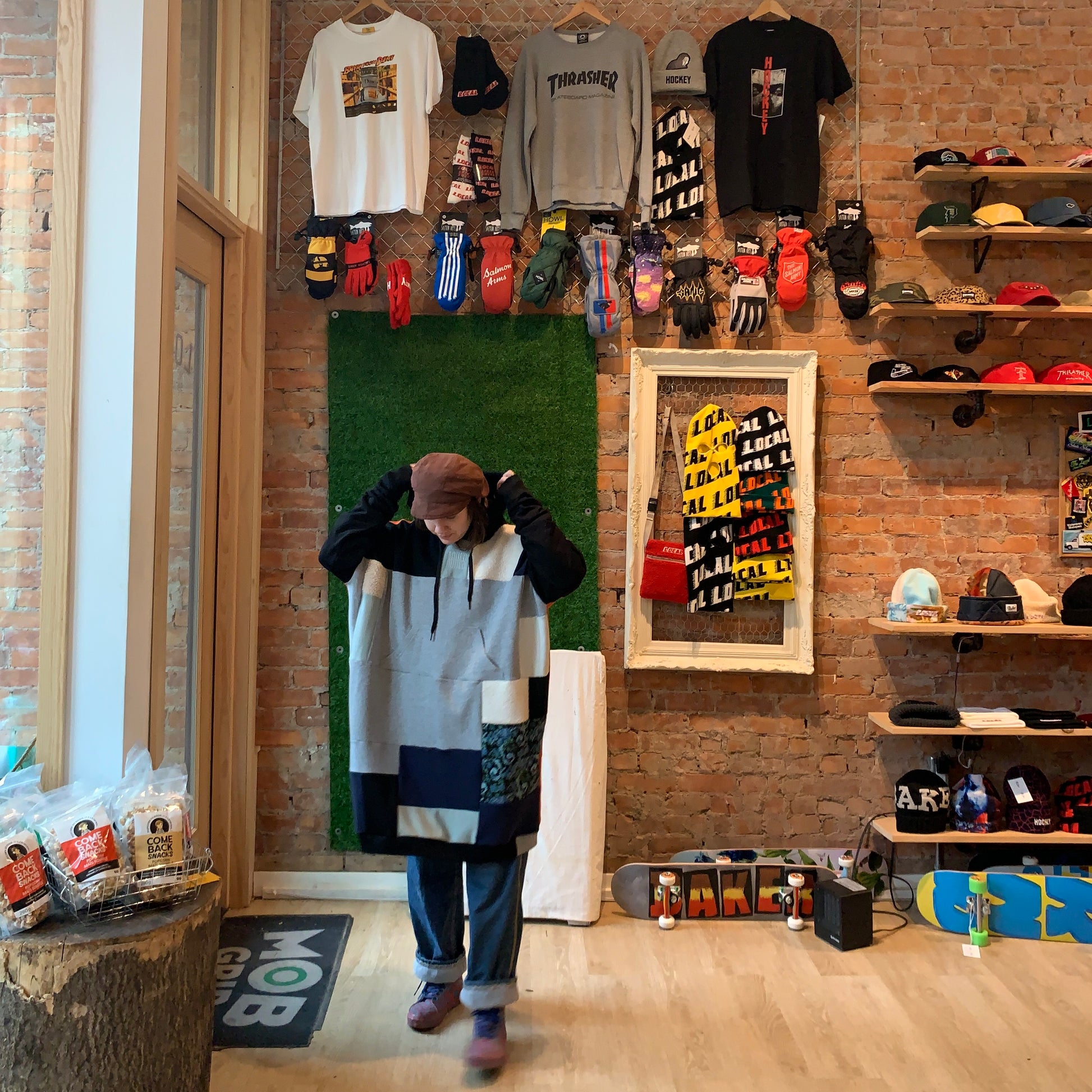 Rescued and upcycled knit textiles stitched together by ASHES