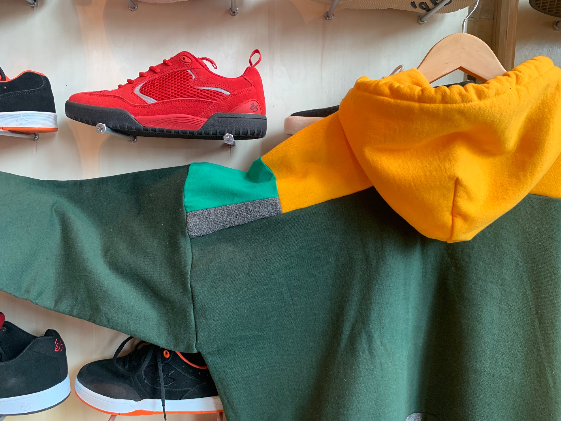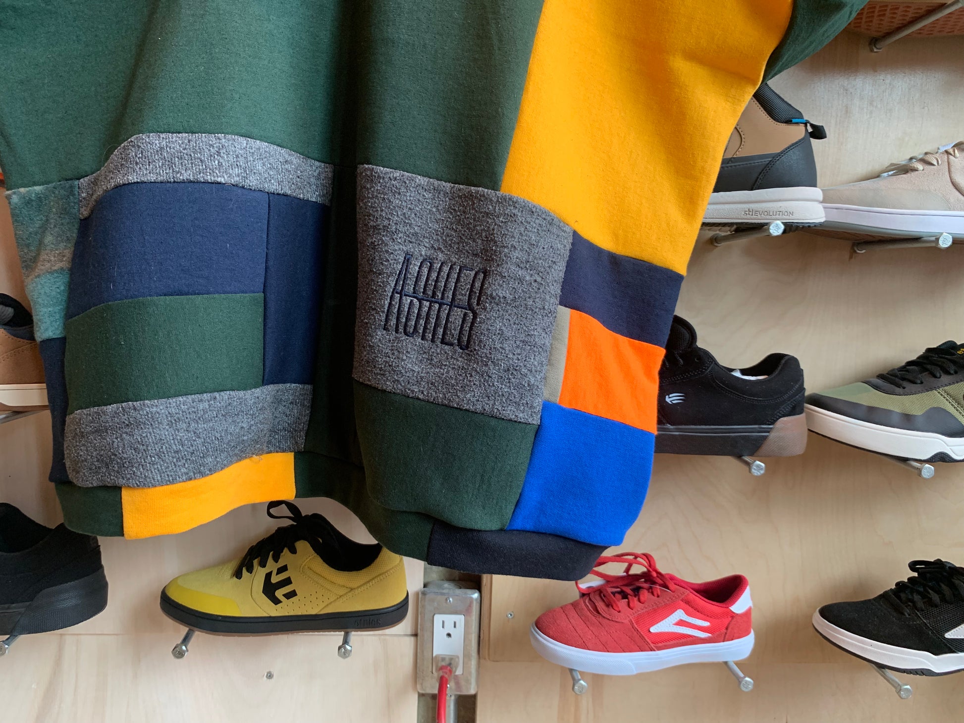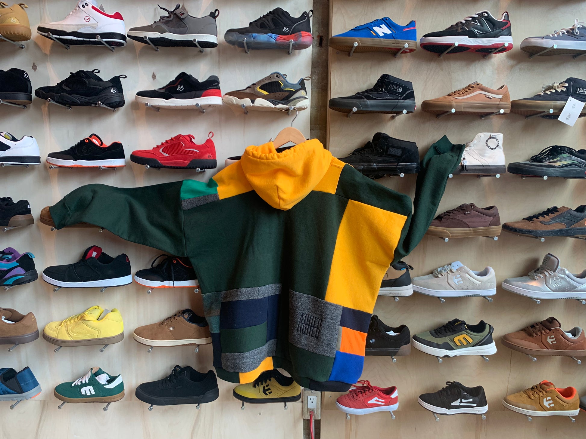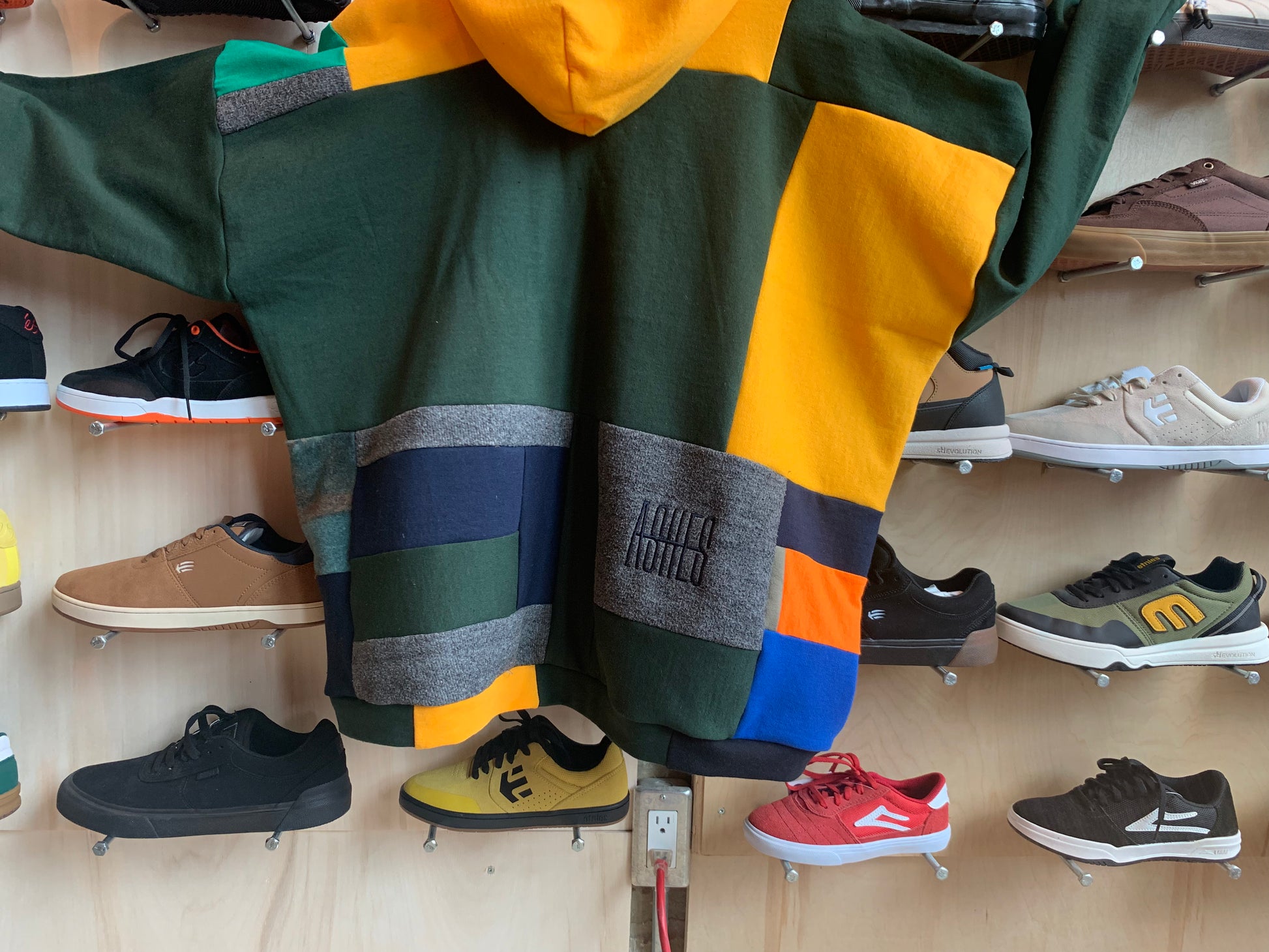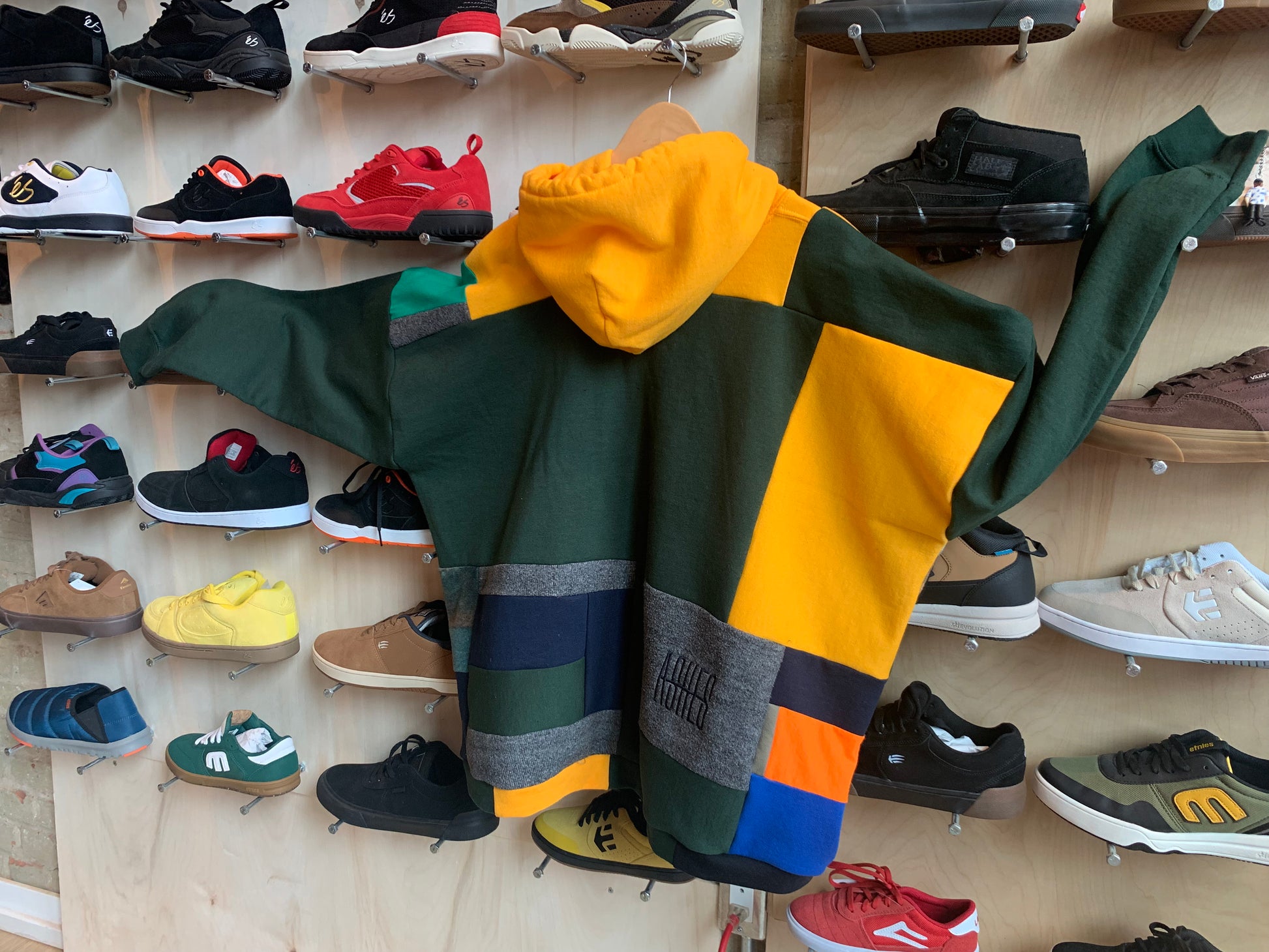 SQUARED AWAY hoodie. One of a kind patchwork sweater made by ASHES in flow state. A collection of knit cotton and polyester mix textiles.