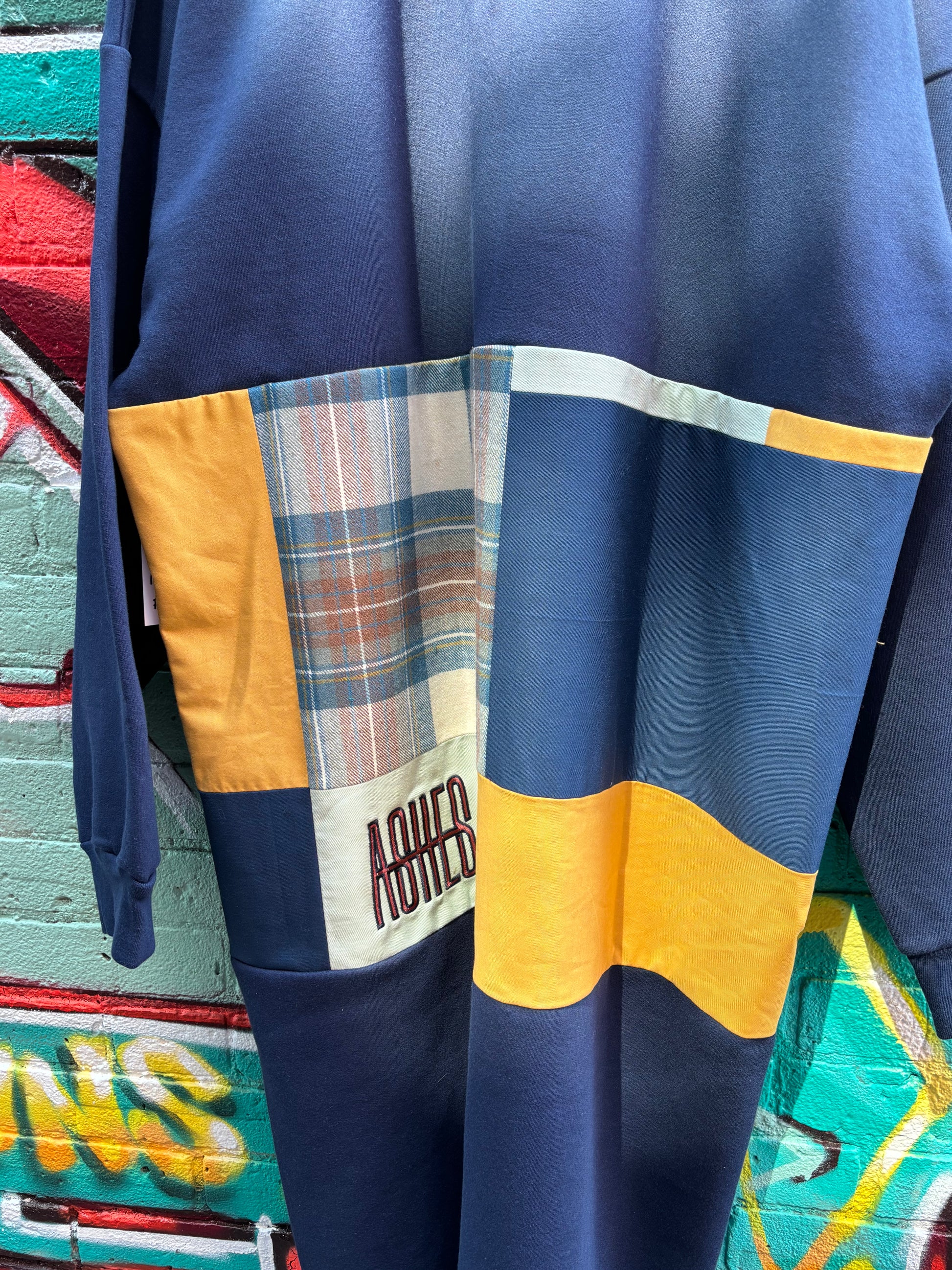 Quilt body by GEZELLIG Studio with plaid , mint and mustard yellow patchwork squares. Completely one of a kind and unique.