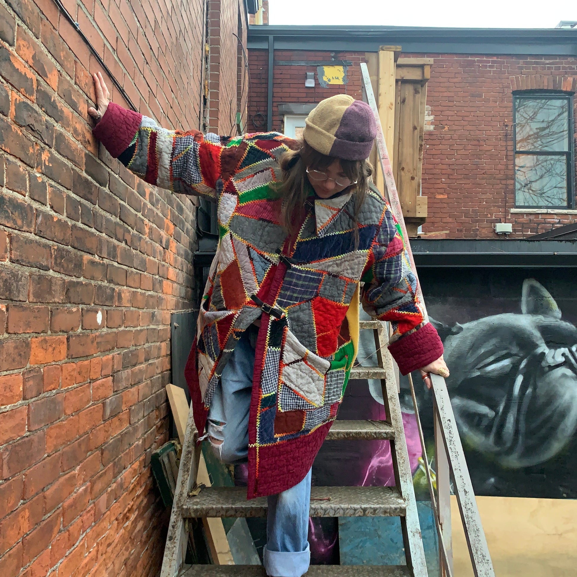 One of a kind. Made from a vintage quilt. Please note natural wear of textiles.