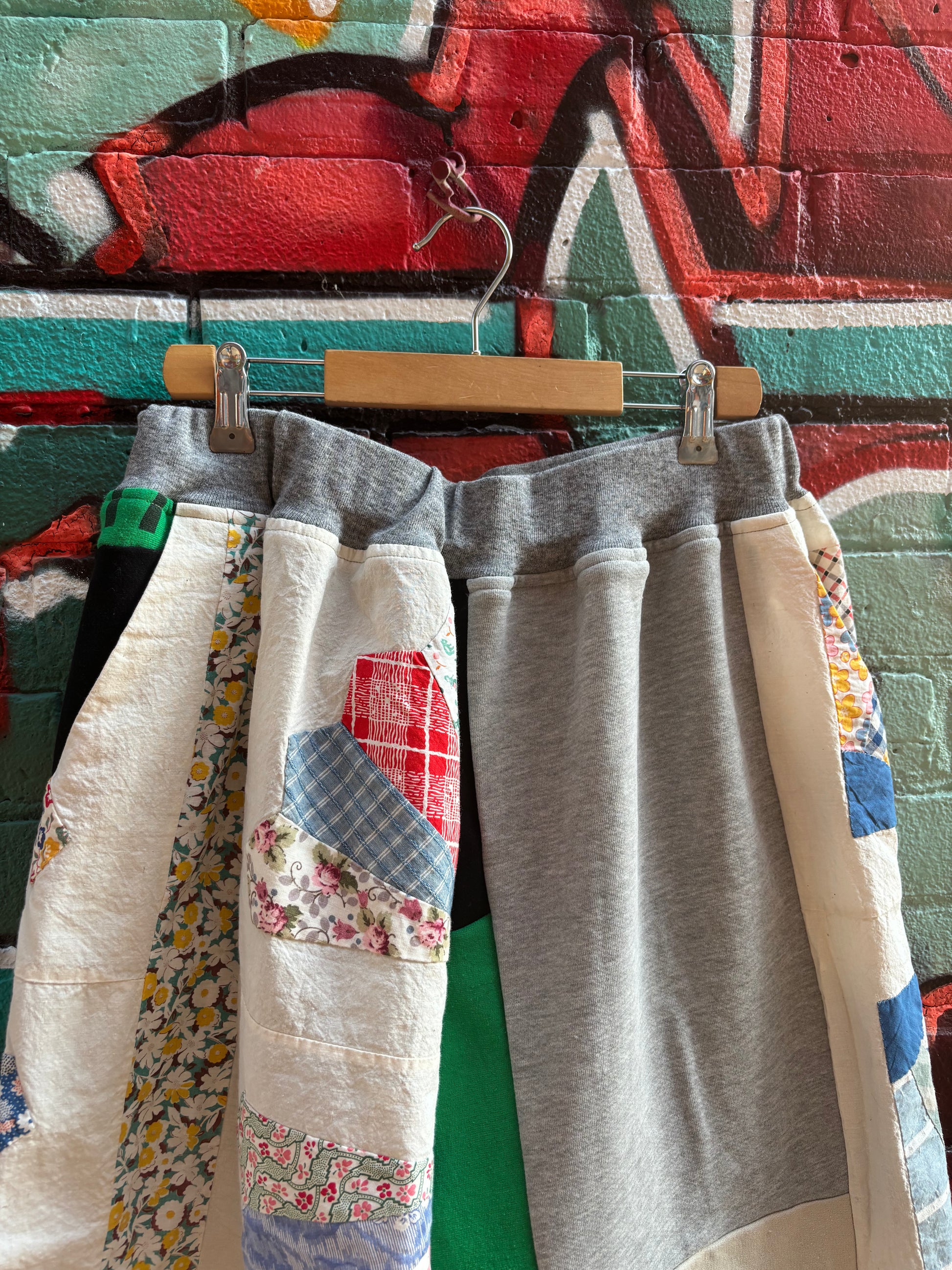 All materials rescued and upcycled into a wonderful , magical one of a kind pair of pants.