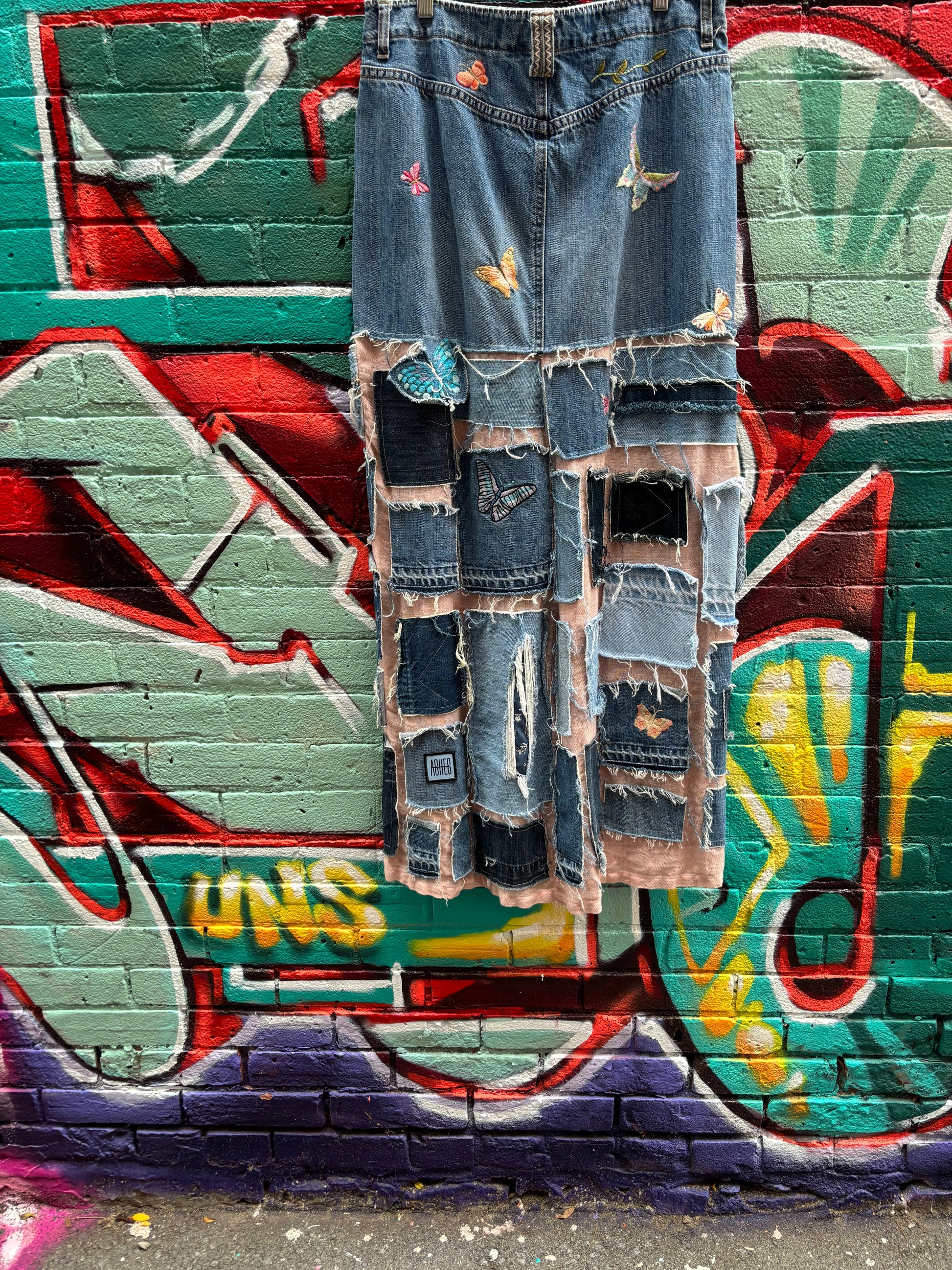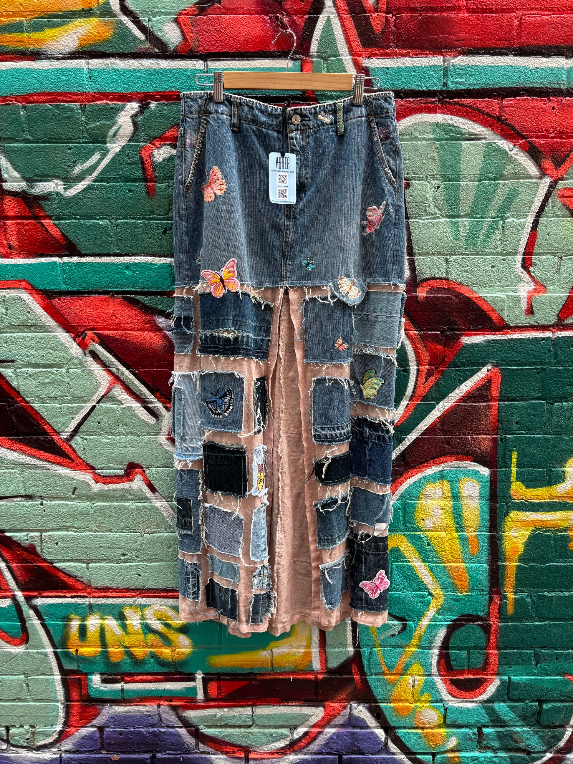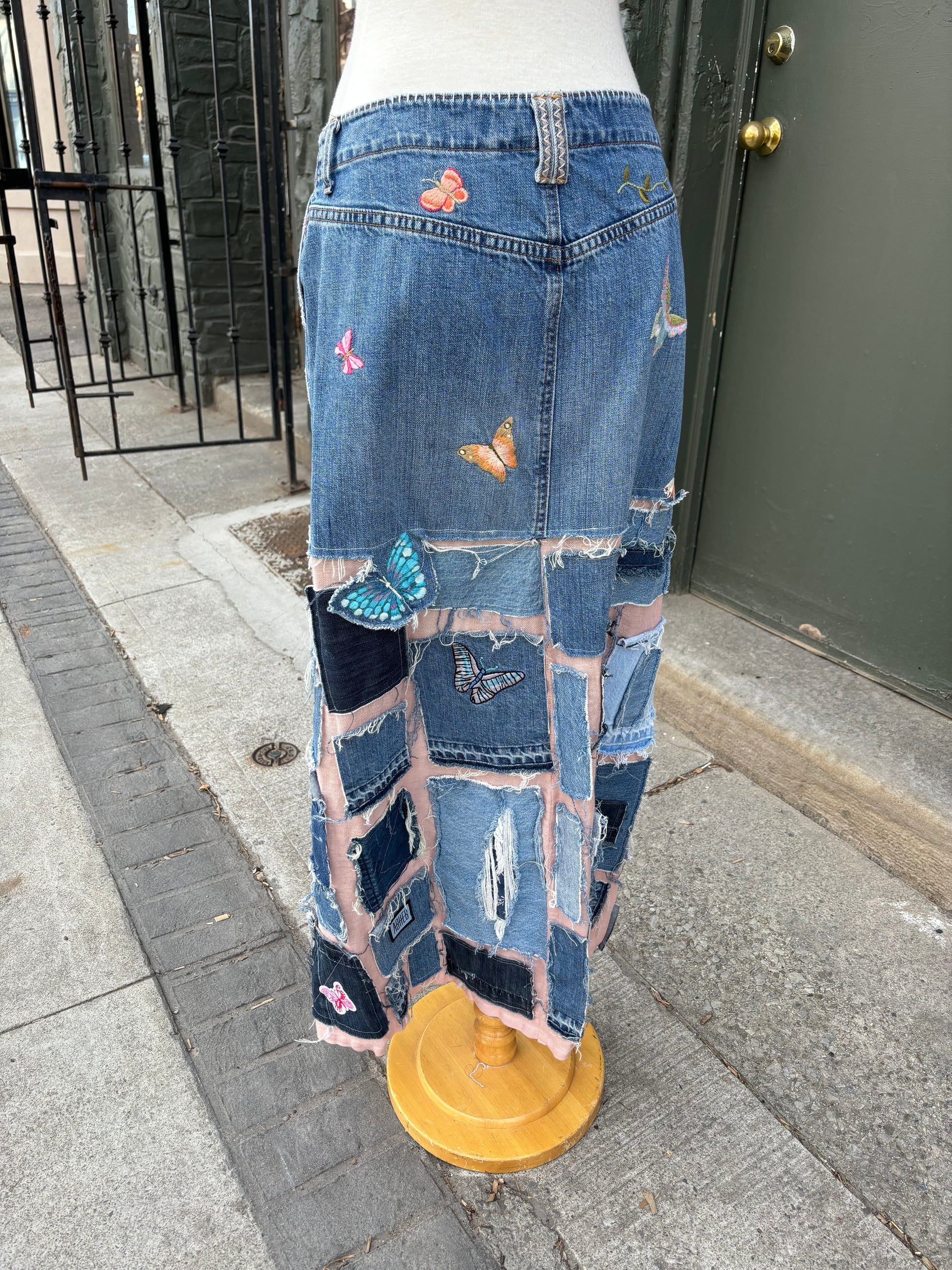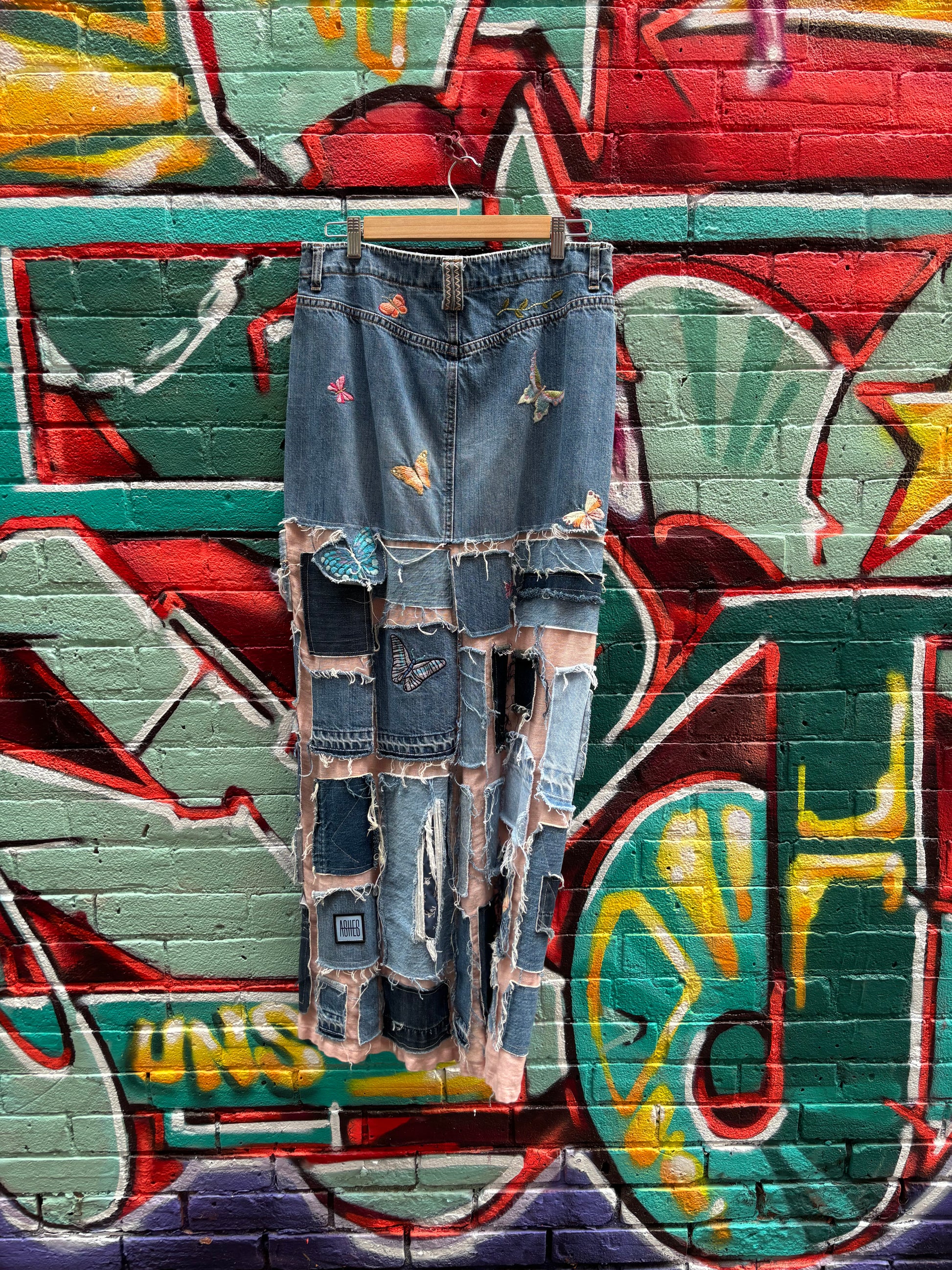 REWORKED DENIM BUTTERFLY SKIRT - SZ 12