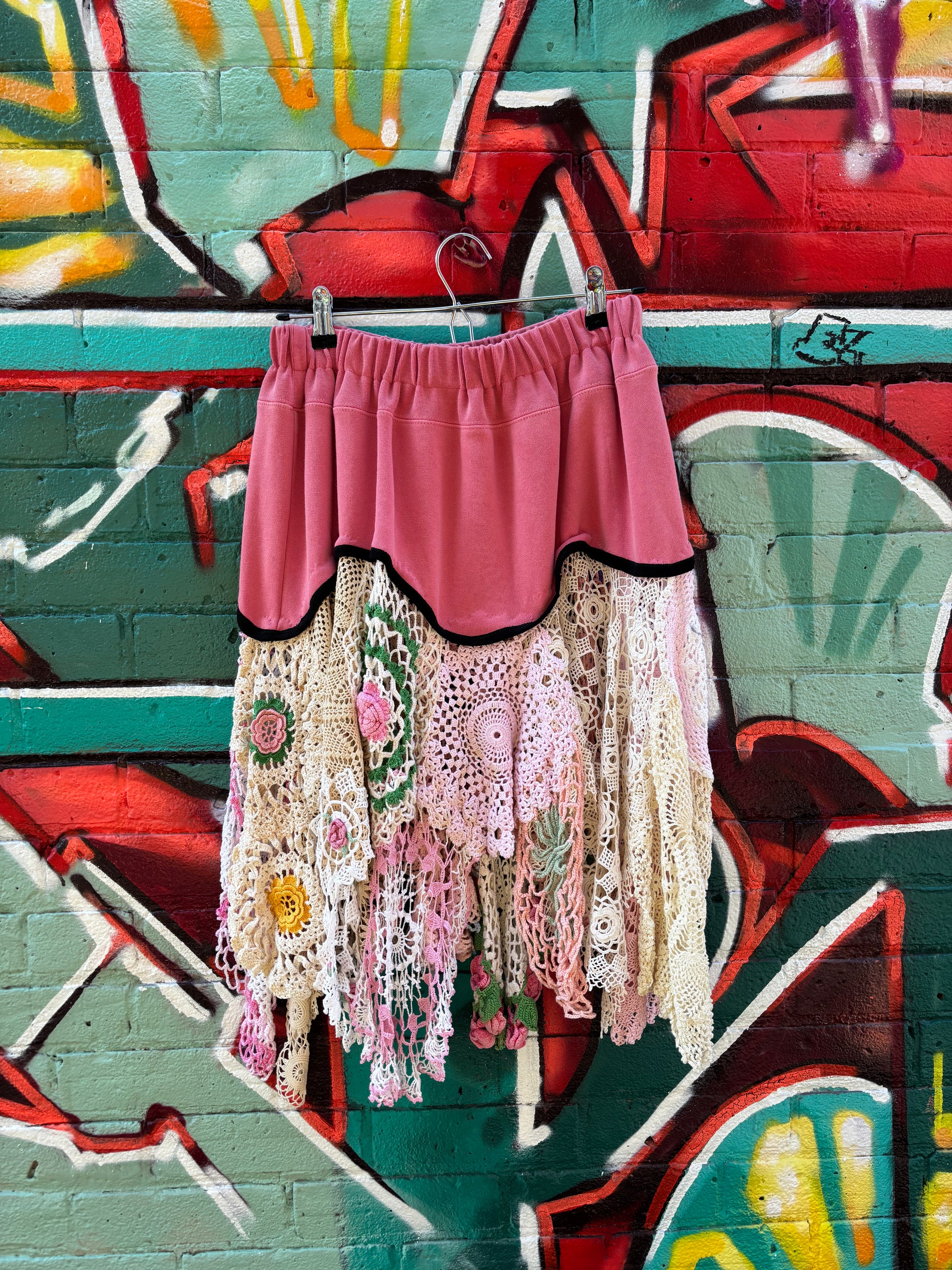 SHORT PINK SKIRT W/ VINTAGE PINK DOILIES