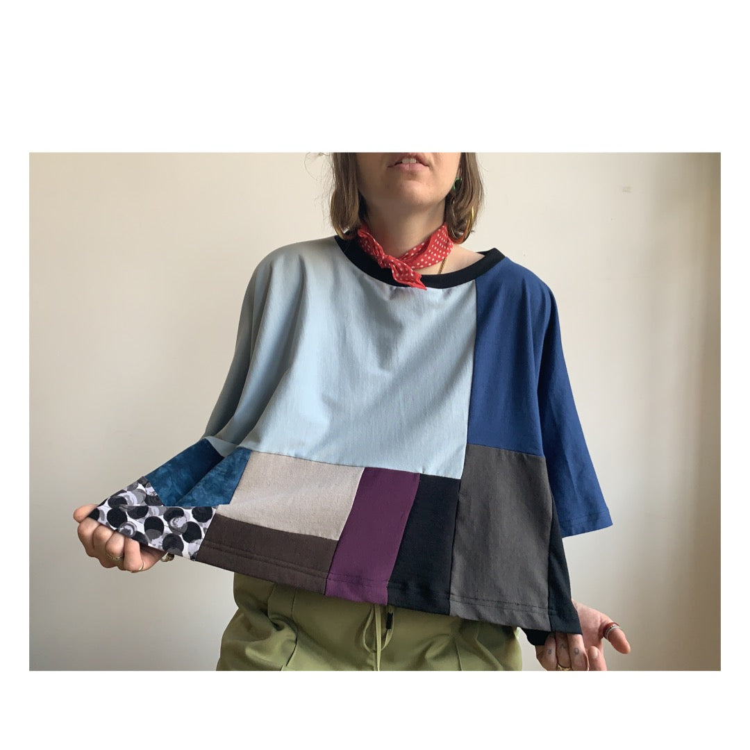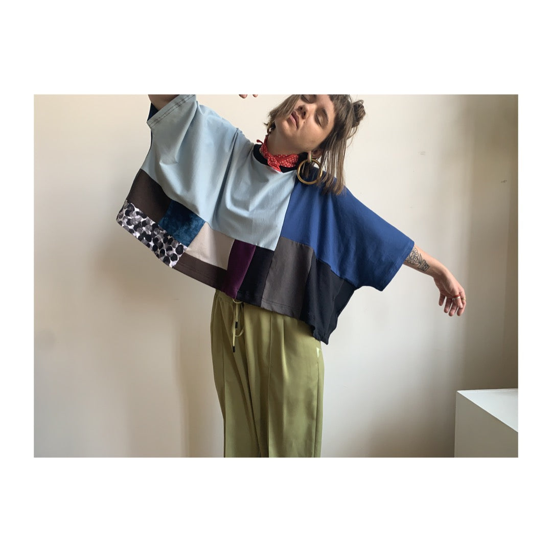 Patched together by Ash with a variety of knit fabrics. Each piece is one of a kind and is made in flow state.