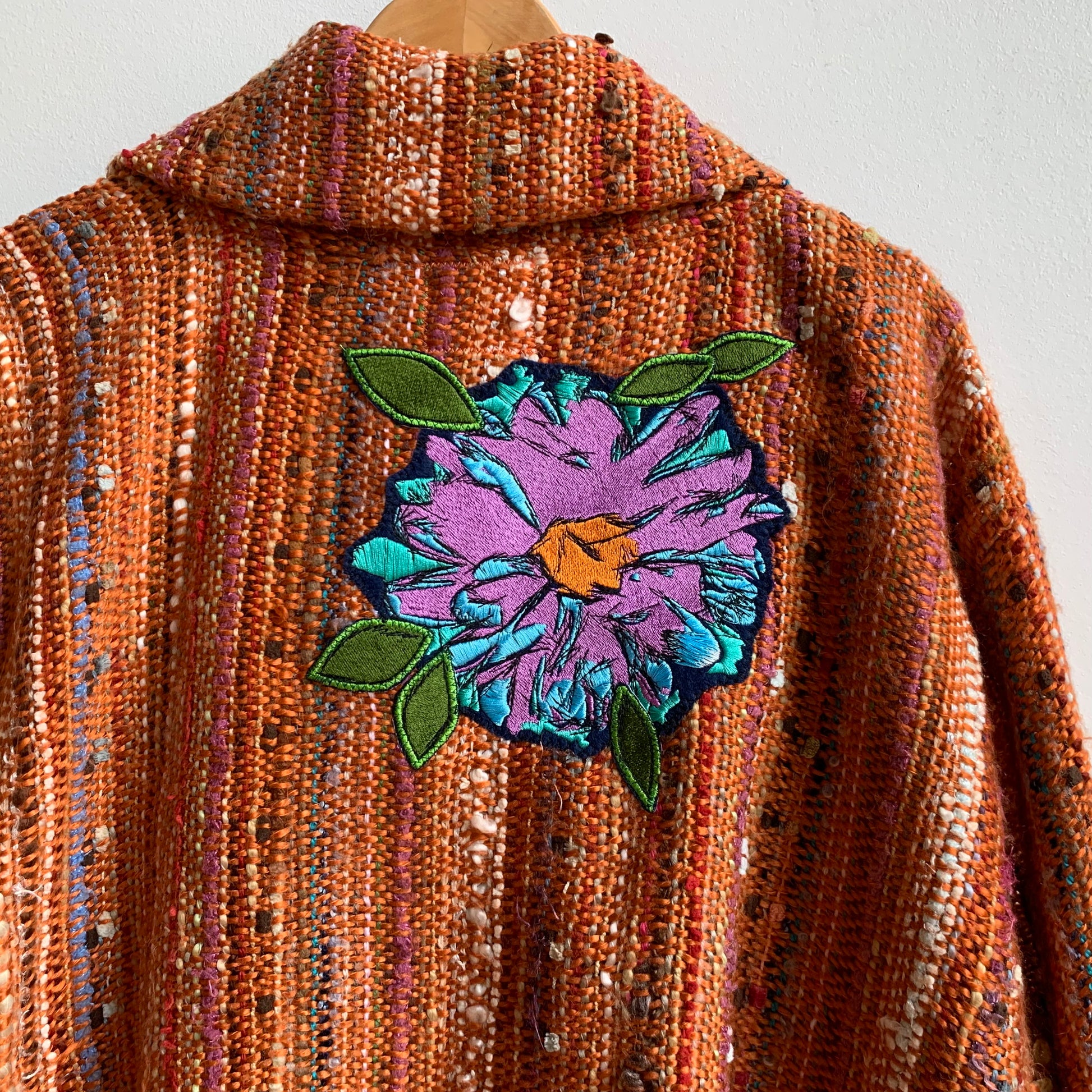 Original ASHES embroidery on back. Flower with a mix of machine and free motion stitching.
