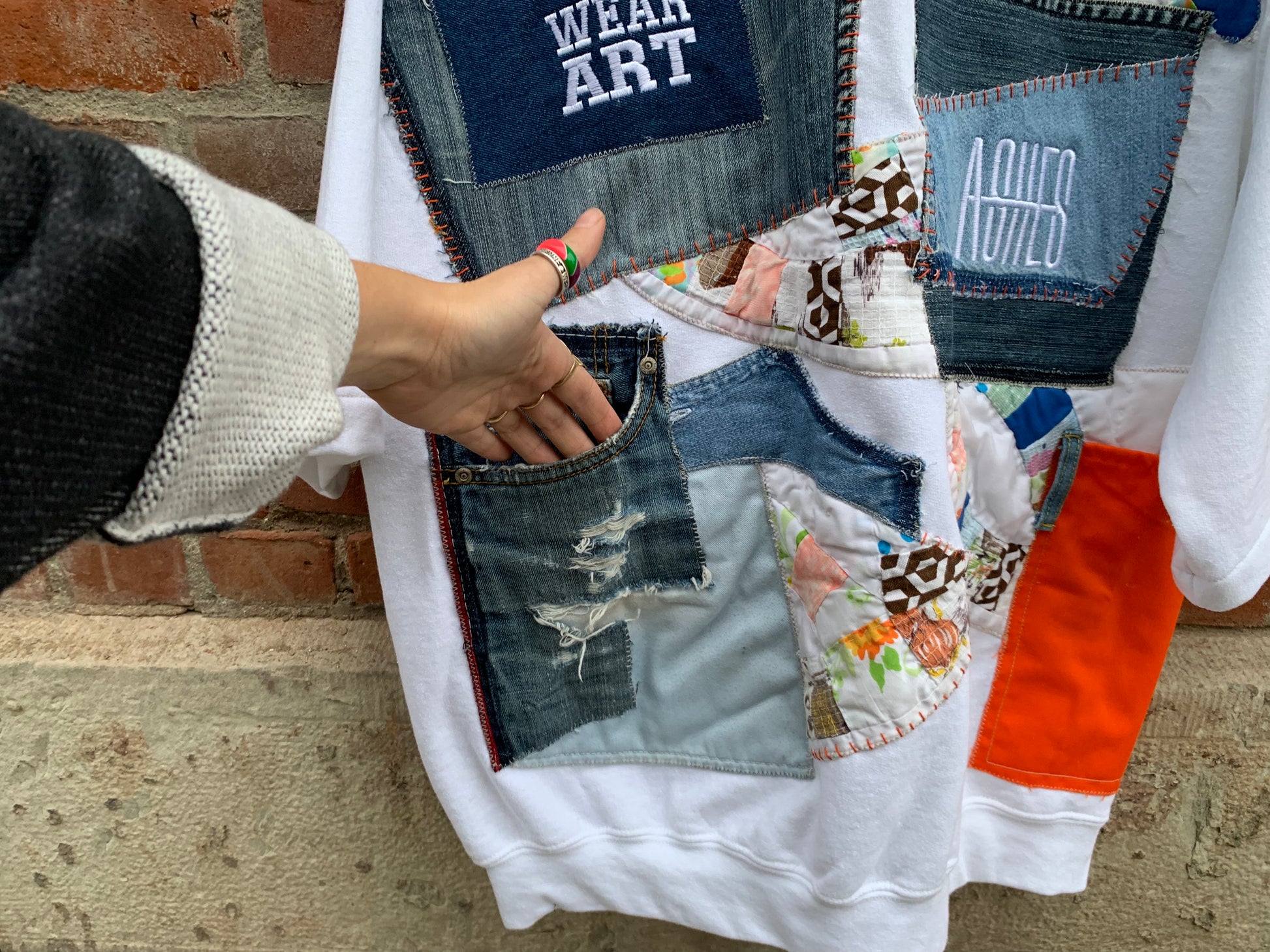 UPCYCLED XL CREW NECK - DENIM & QUILT PATCHWORK